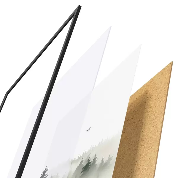 Постер складається з рами, оргскла, надрукованого зображення та підкладки з ДСП. Завдяки кріпленням на звороті плакат можна одразу ж повісити на стіну.
