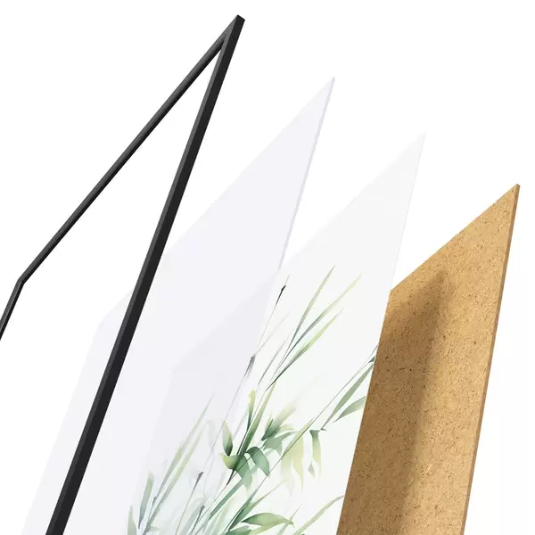 Постер складається з рами, оргскла, надрукованого зображення та підкладки з ДСП. Завдяки кріпленням на звороті плакат можна одразу ж повісити на стіну.