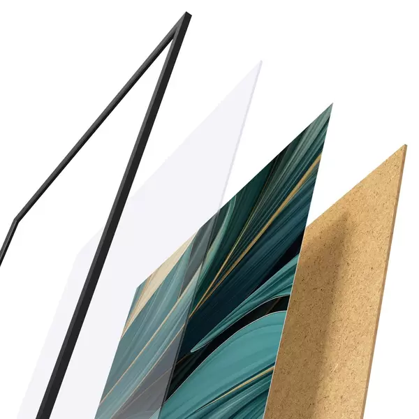 Постер складається з рами, оргскла, надрукованого зображення та підкладки з ДСП. Завдяки кріпленням на звороті плакат можна одразу ж повісити на стіну.