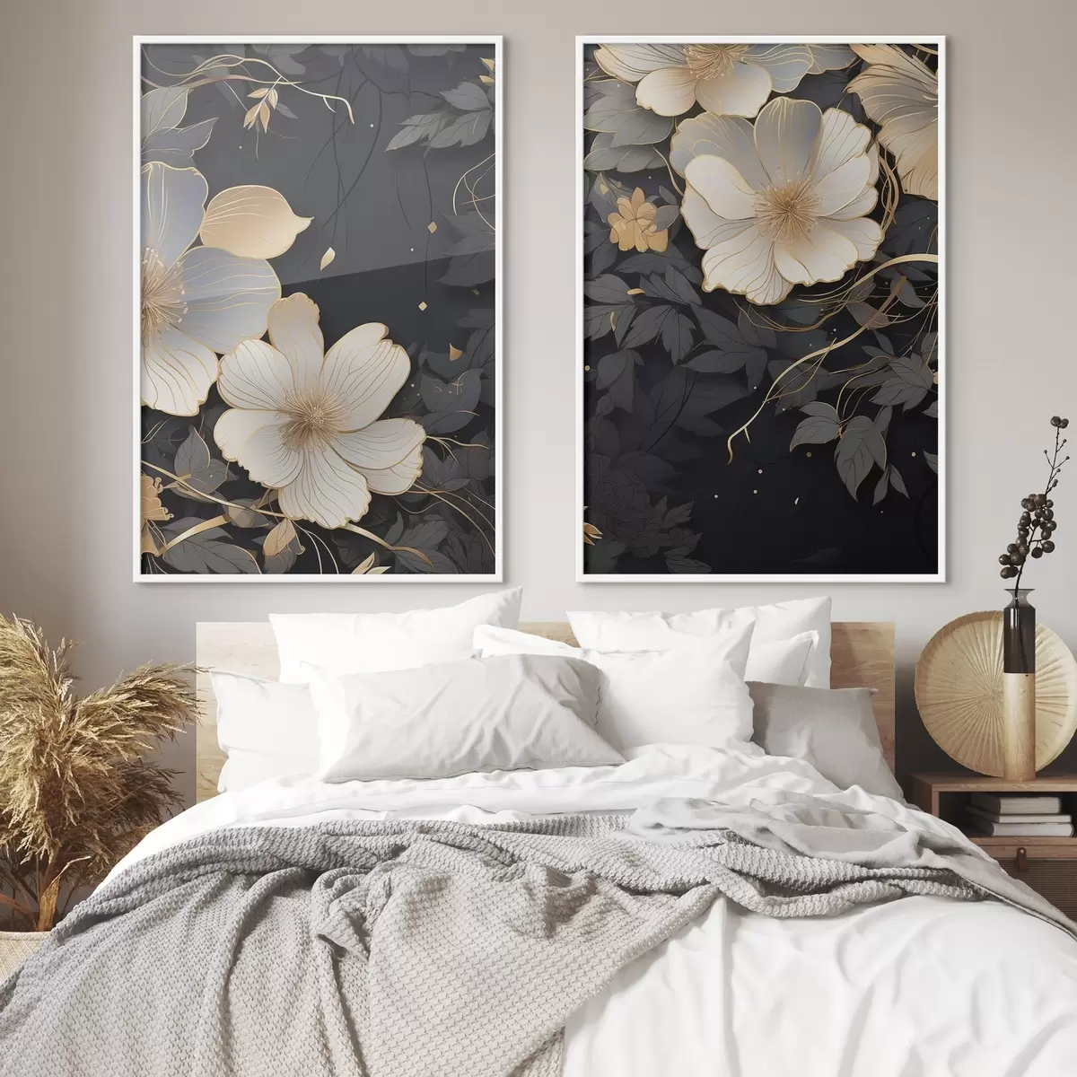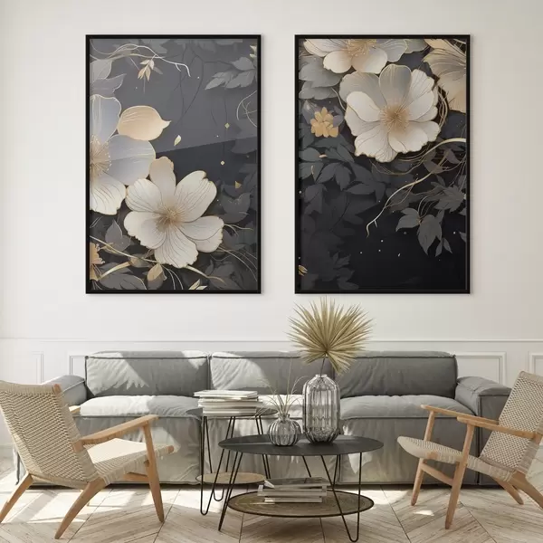 Постер на стіну Великі абстрактні квіти на темному тлі Nr d01066