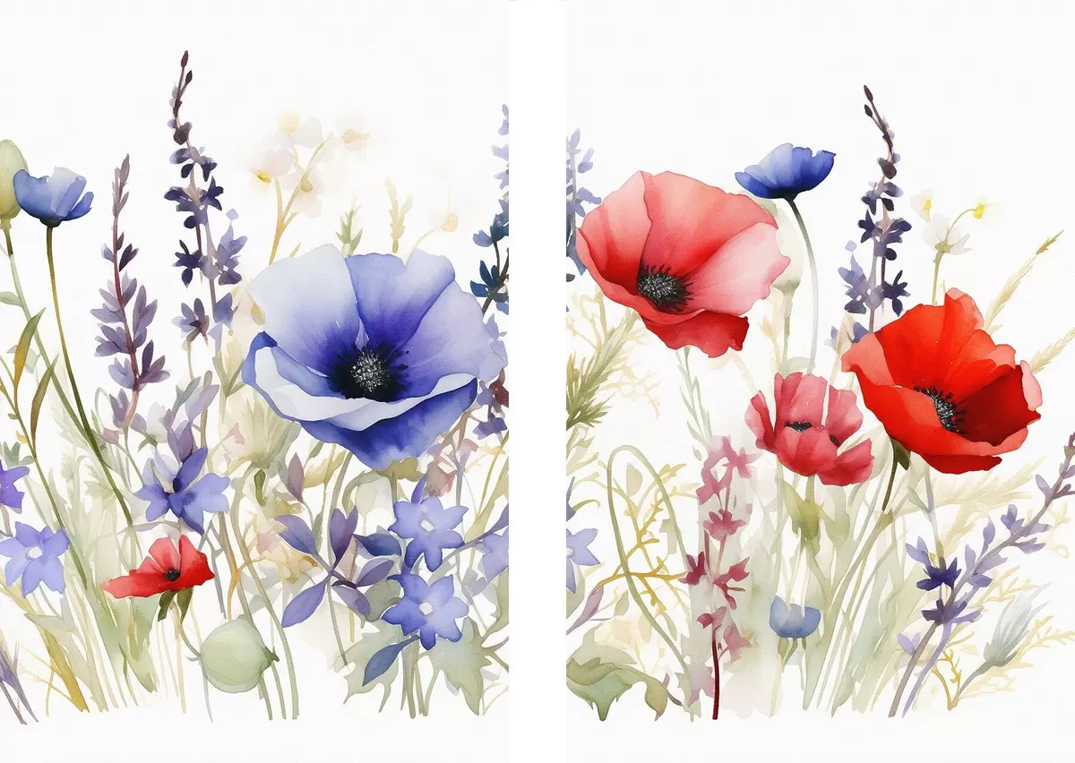 Постер на стіну Маки в полі, ефект акварелі Nr d01067