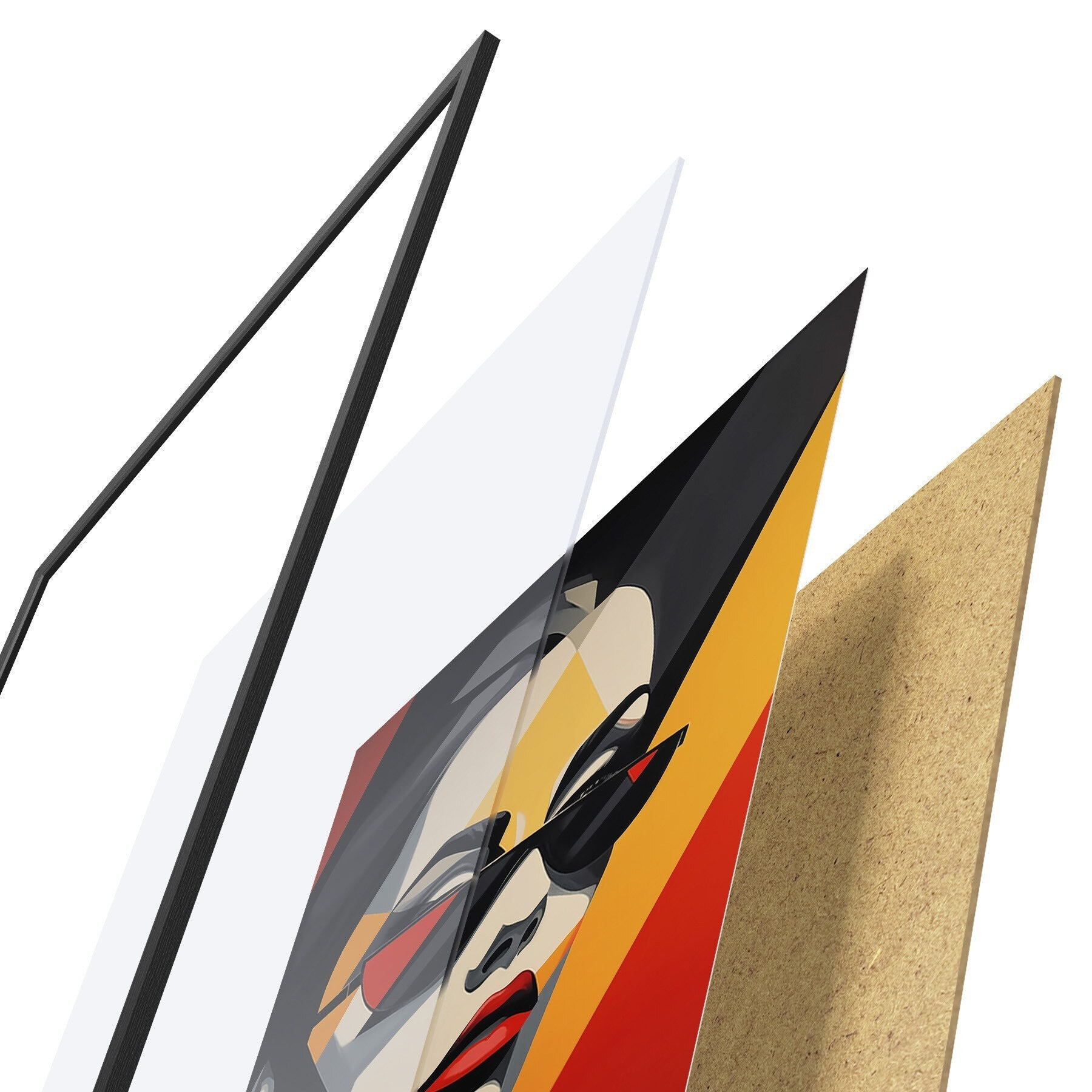 Постер складається з рами, оргскла, надрукованого зображення та підкладки з ДСП. Завдяки кріпленням на звороті плакат можна одразу ж повісити на стіну.