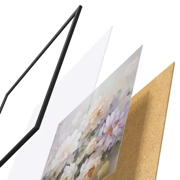 Постер складається з рами, оргскла, надрукованого зображення та підкладки з ДСП. Завдяки кріпленням на звороті плакат можна одразу ж повісити на стіну.