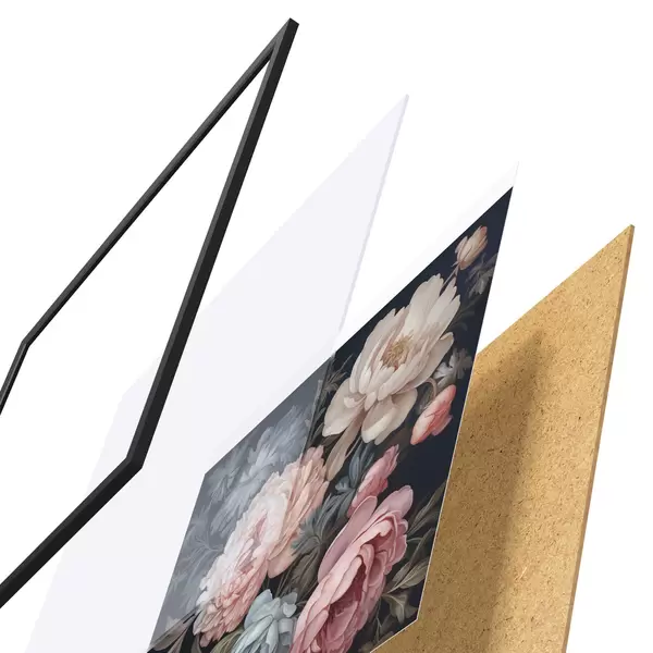 Постер складається з рами, оргскла, надрукованого зображення та підкладки з ДСП. Завдяки кріпленням на звороті плакат можна одразу ж повісити на стіну.