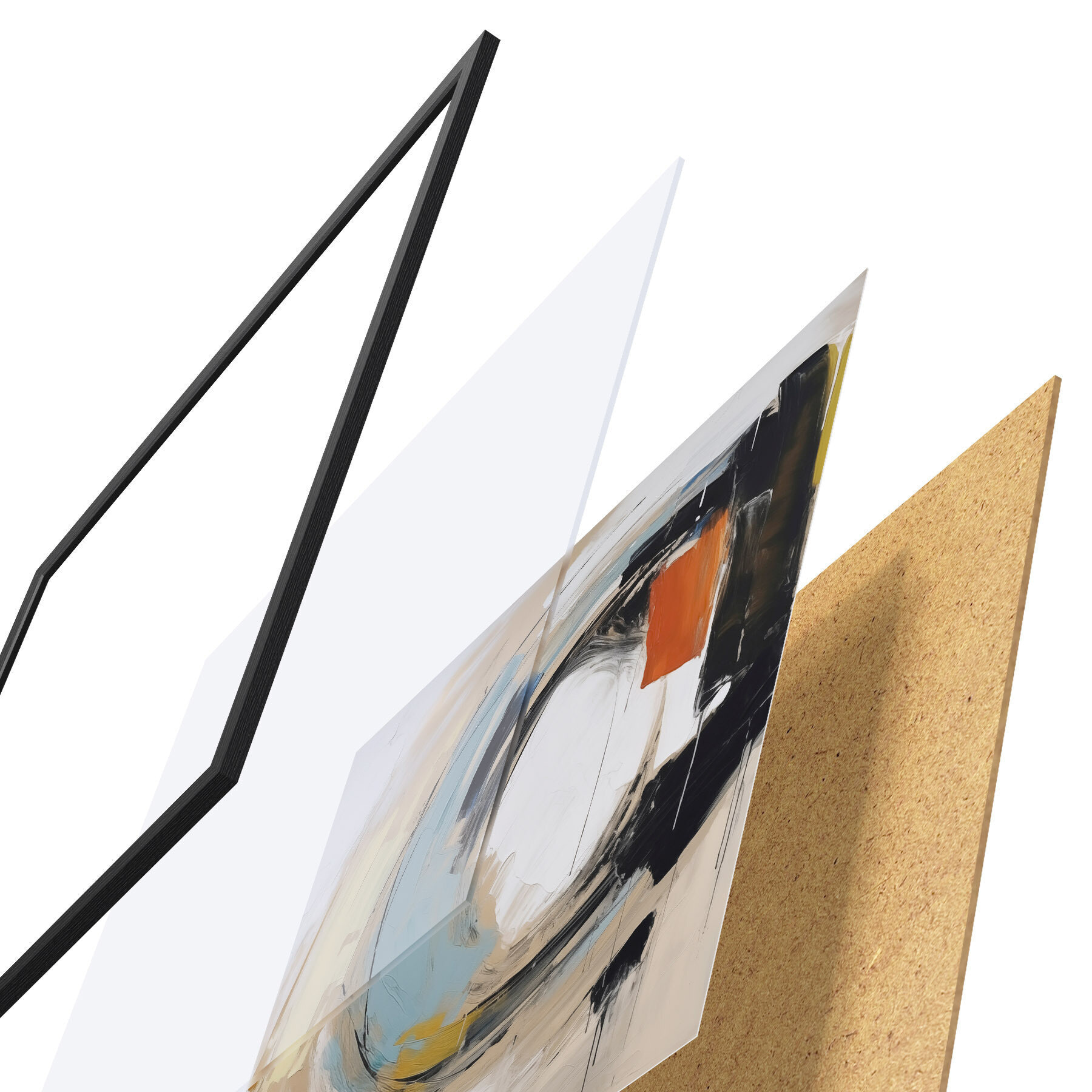 Постер складається з рами, оргскла, надрукованого зображення та підкладки з ДСП. Завдяки кріпленням на звороті плакат можна одразу ж повісити на стіну.