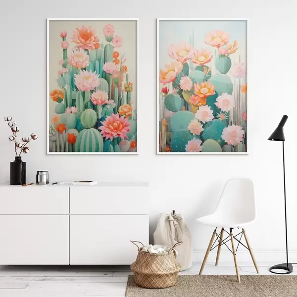Постер на стіну Кактуси з великими квітами, пастельна палітра та відчуття спокою Nr d01086