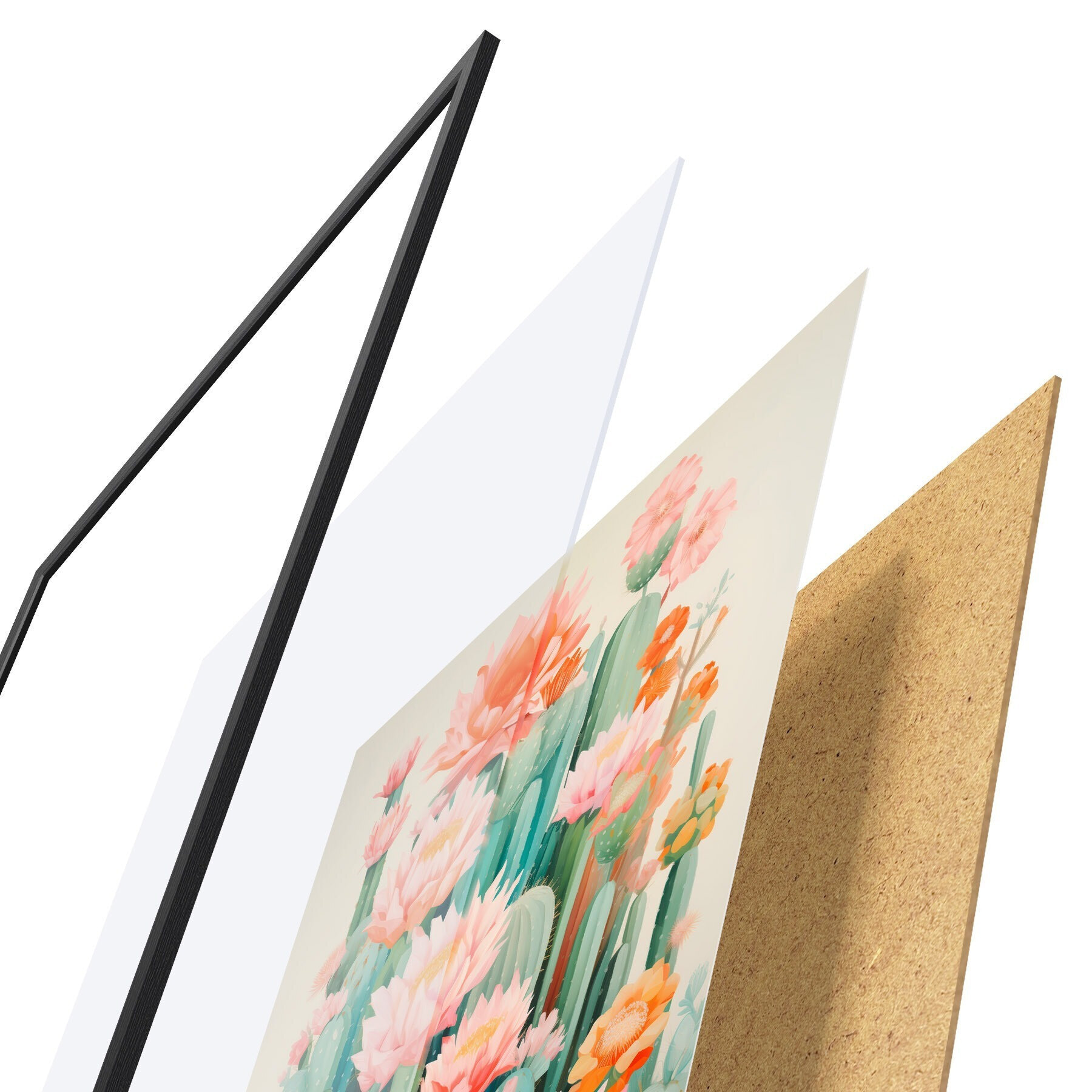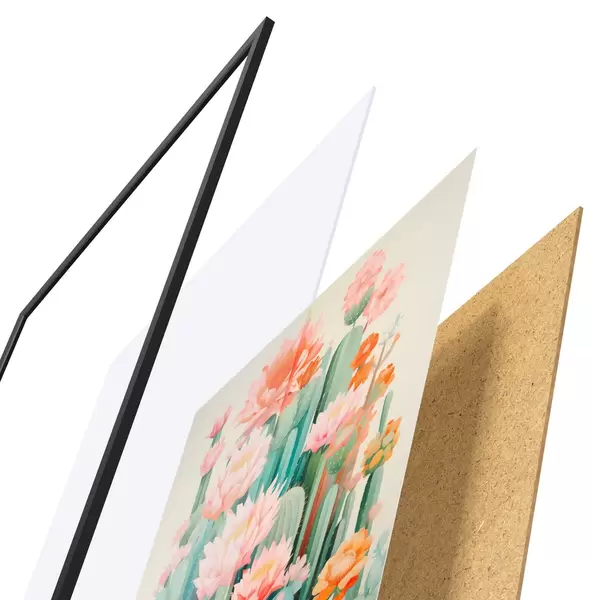 Постер складається з рами, оргскла, надрукованого зображення та підкладки з ДСП. Завдяки кріпленням на звороті плакат можна одразу ж повісити на стіну.