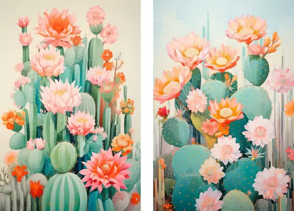 Постер на стіну Кактуси з великими квітами, пастельна палітра та відчуття спокою Nr d01086