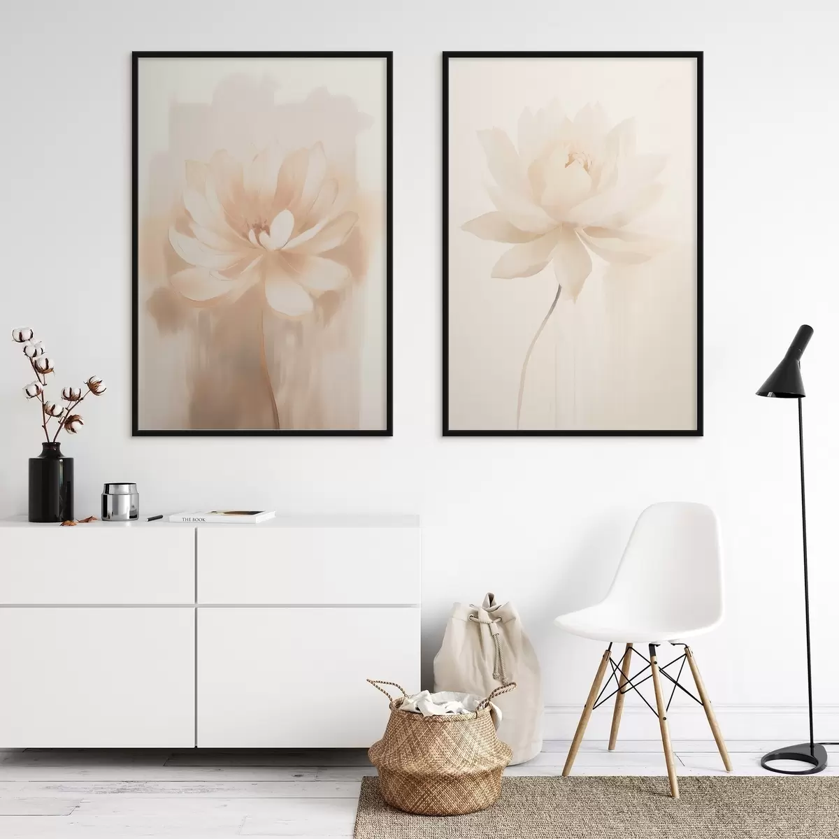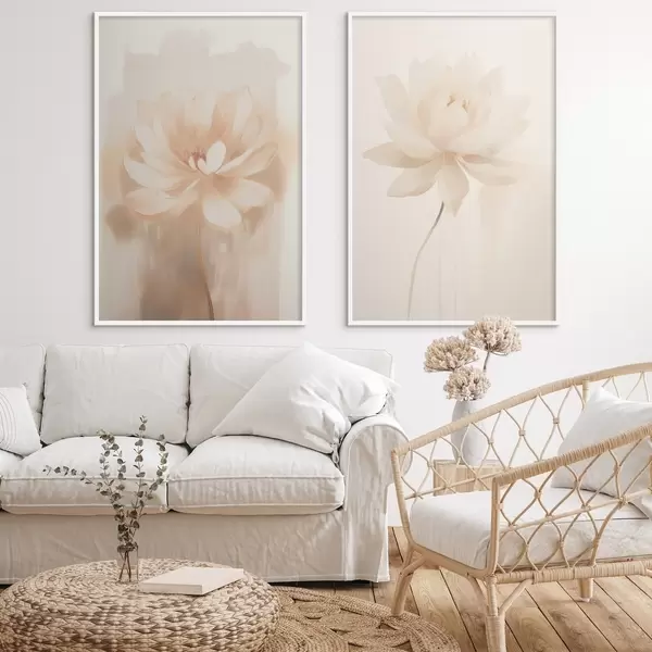 Постер на стіну Квіткова композиція в теплих бежевих тонах з легкими мазками пензля і повітряним фоном Nr d01087