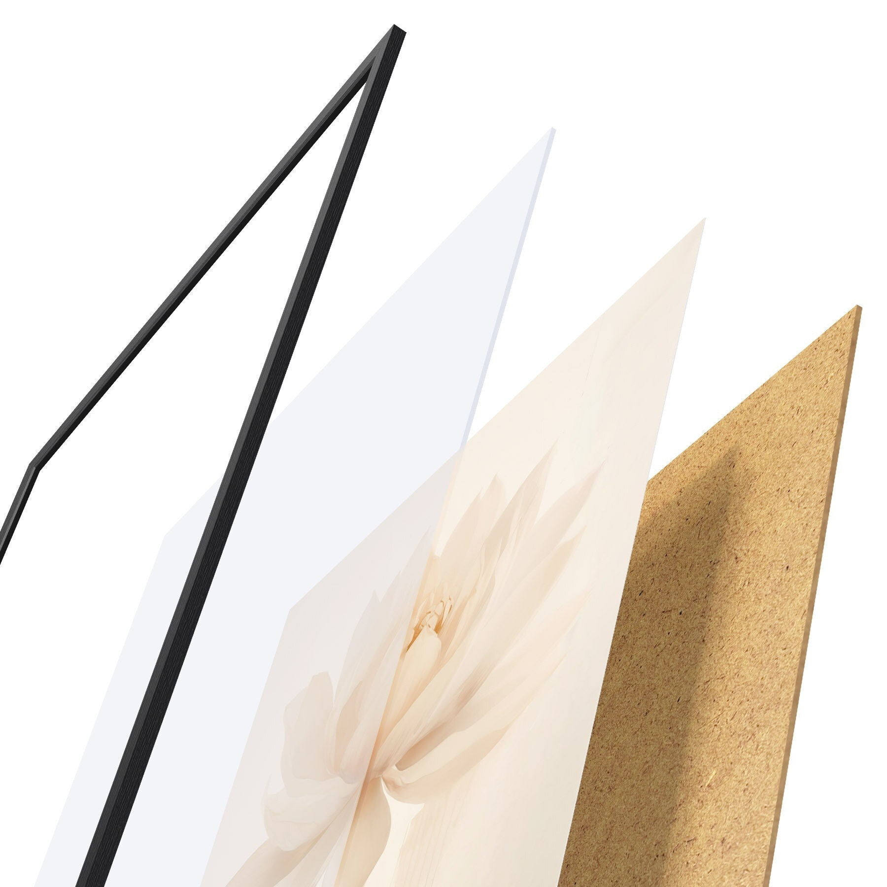 Постер складається з рами, оргскла, надрукованого зображення та підкладки з ДСП. Завдяки кріпленням на звороті плакат можна одразу ж повісити на стіну.