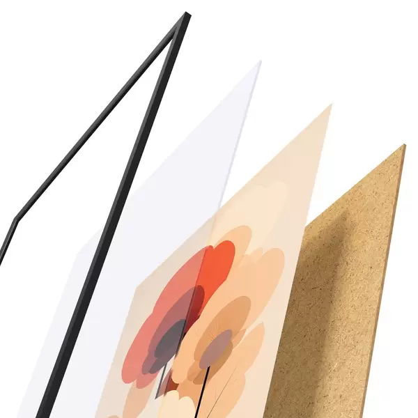Постер складається з рами, оргскла, надрукованого зображення та підкладки з ДСП. Завдяки кріпленням на звороті плакат можна одразу ж повісити на стіну.