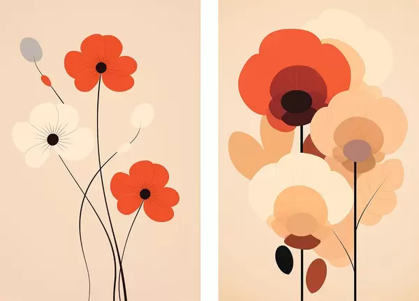 Постер на стіну Мінімалістичний квітковий диптих у теплих бежево-коралових тонах з графічними лініями Nr d01090