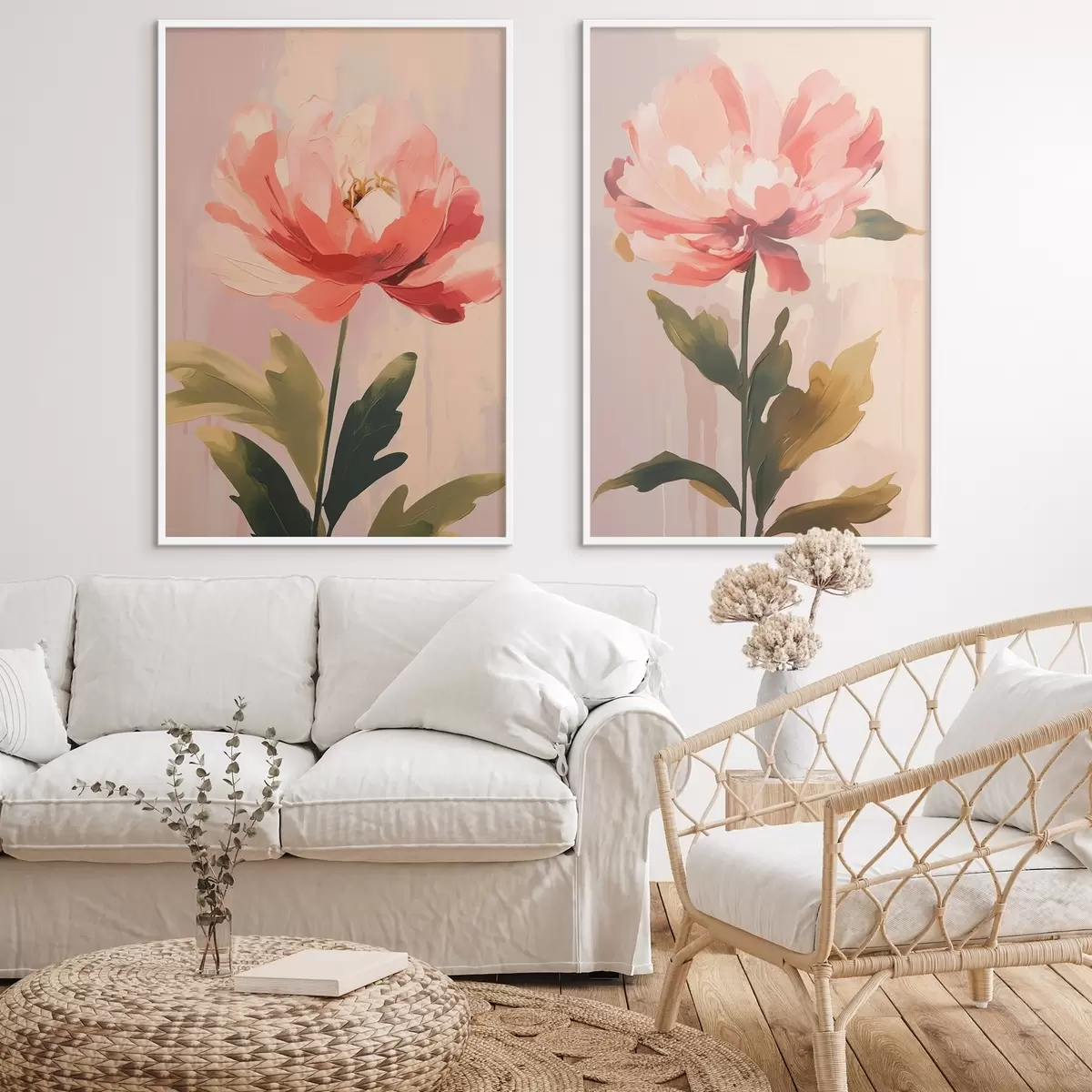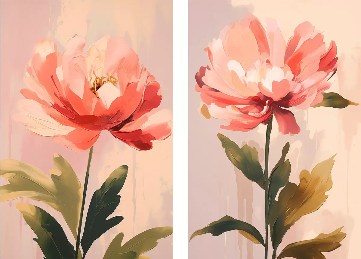 Постер на стіну Пастельні півонії на високих стеблах у теплих рожевих відтінках Nr d01093