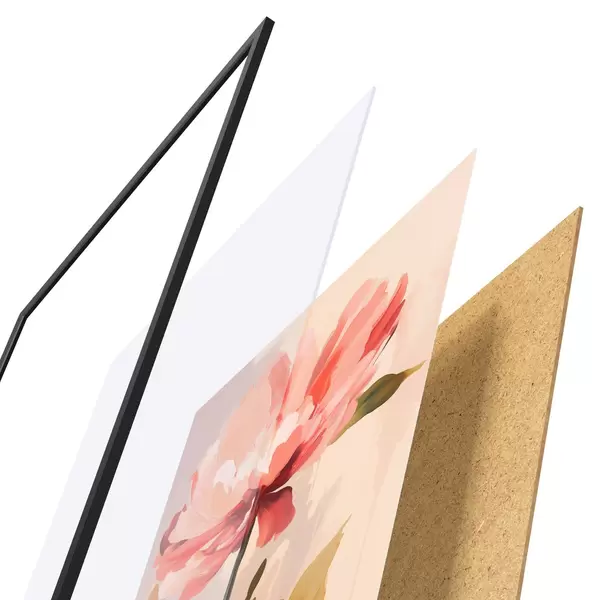 Постер складається з рами, оргскла, надрукованого зображення та підкладки з ДСП. Завдяки кріпленням на звороті плакат можна одразу ж повісити на стіну.
