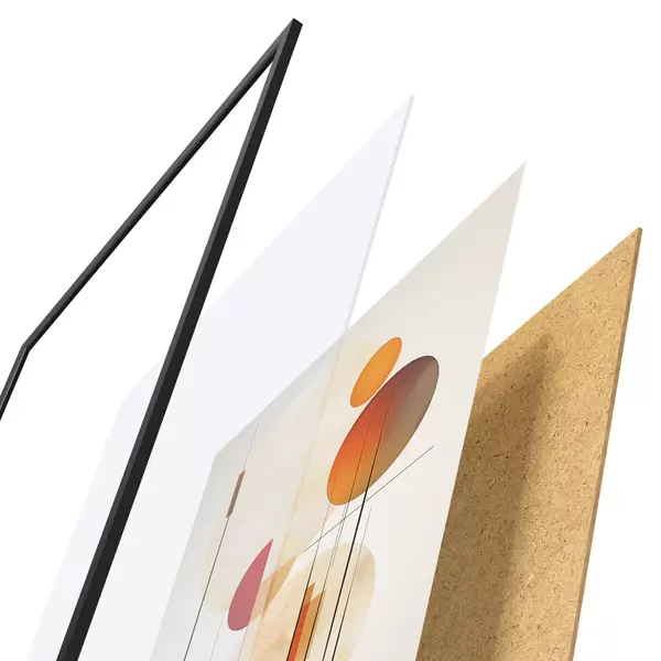 Постер складається з рами, оргскла, надрукованого зображення та підкладки з ДСП. Завдяки кріпленням на звороті плакат можна одразу ж повісити на стіну.
