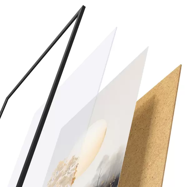 Постер складається з рами, оргскла, надрукованого зображення та підкладки з ДСП. Завдяки кріпленням на звороті плакат можна одразу ж повісити на стіну.