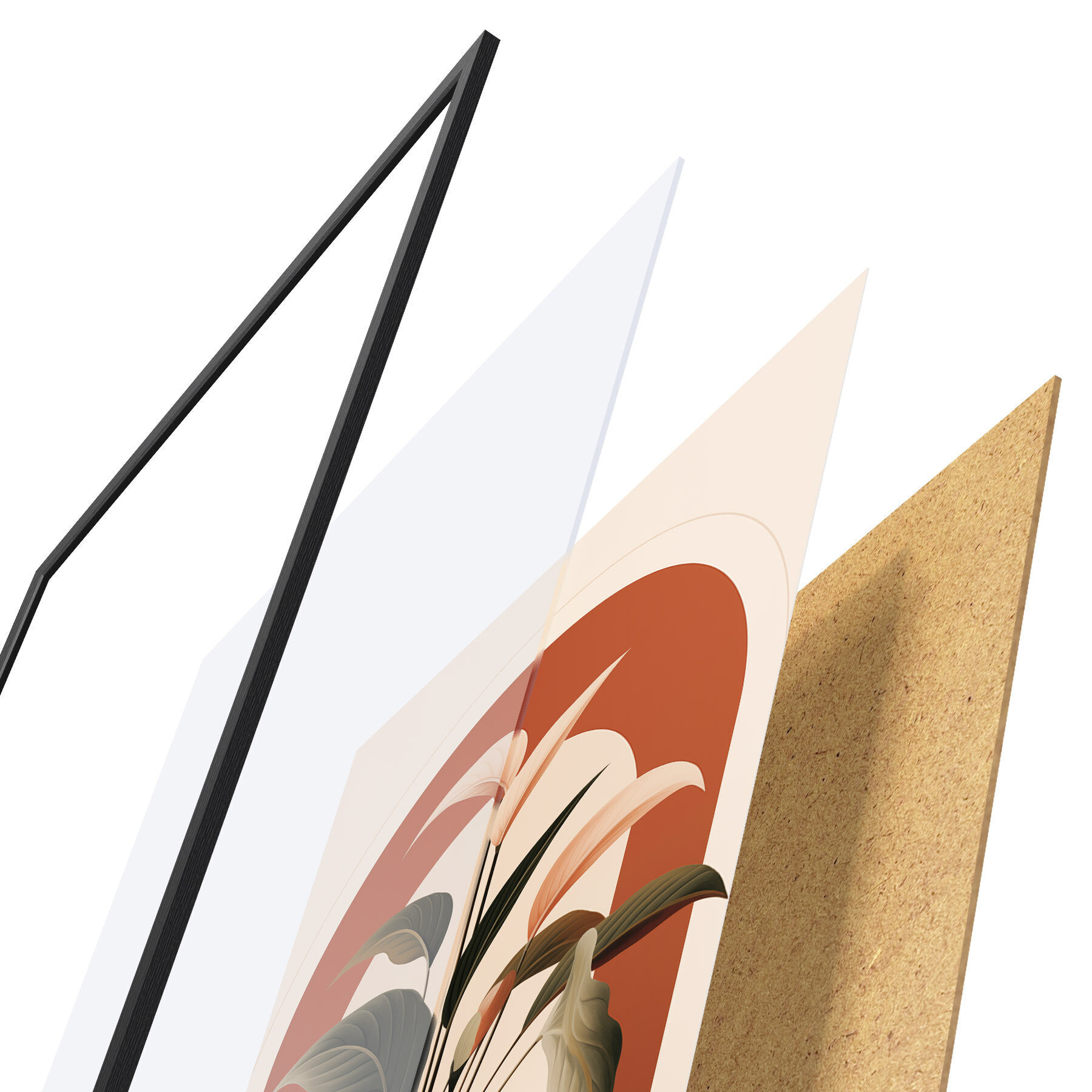 Постер складається з рами, оргскла, надрукованого зображення та підкладки з ДСП. Завдяки кріпленням на звороті плакат можна одразу ж повісити на стіну.