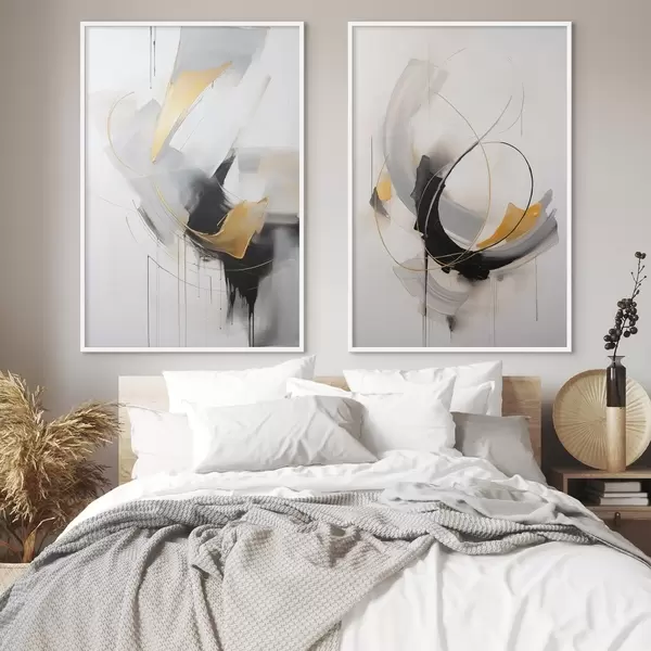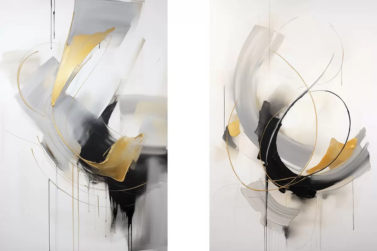 Постер на стіну Абстрактний живопис з імітацією жовтих, чорних і білих мазків, динамічні лінії Nr d01125