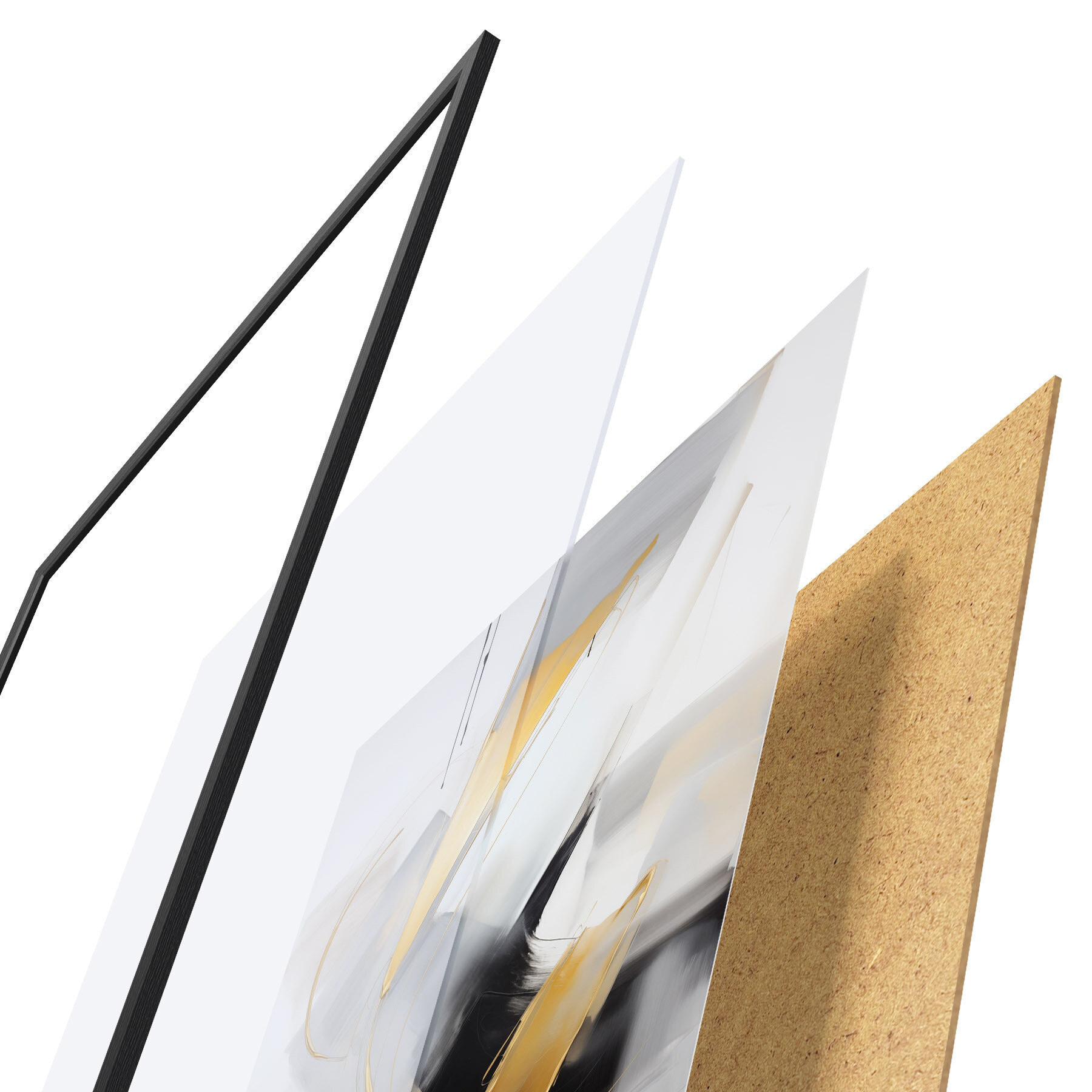 Постер складається з рами, оргскла, надрукованого зображення та підкладки з ДСП. Завдяки кріпленням на звороті плакат можна одразу ж повісити на стіну.