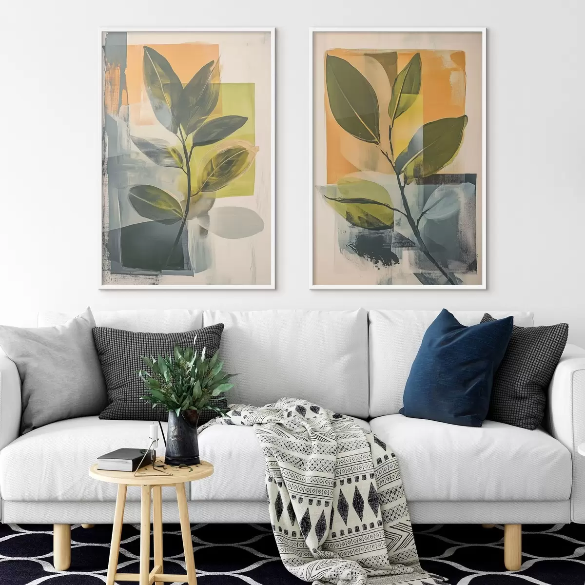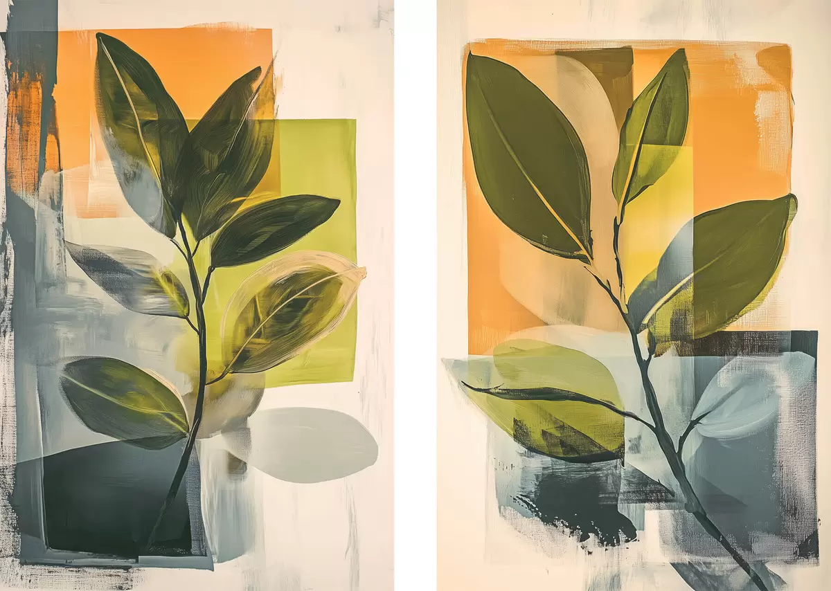 Постер на стіну Гілки з листям на абстрактному тлі Nr d01132