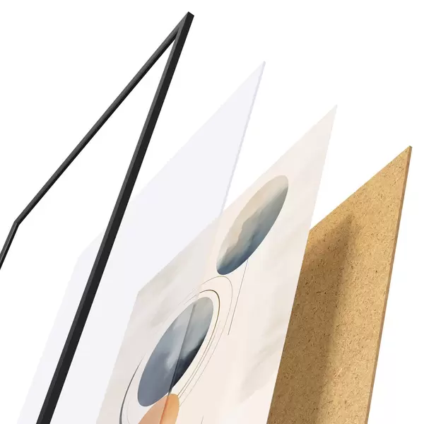 Постер складається з рами, оргскла, надрукованого зображення та підкладки з ДСП. Завдяки кріпленням на звороті плакат можна одразу ж повісити на стіну.