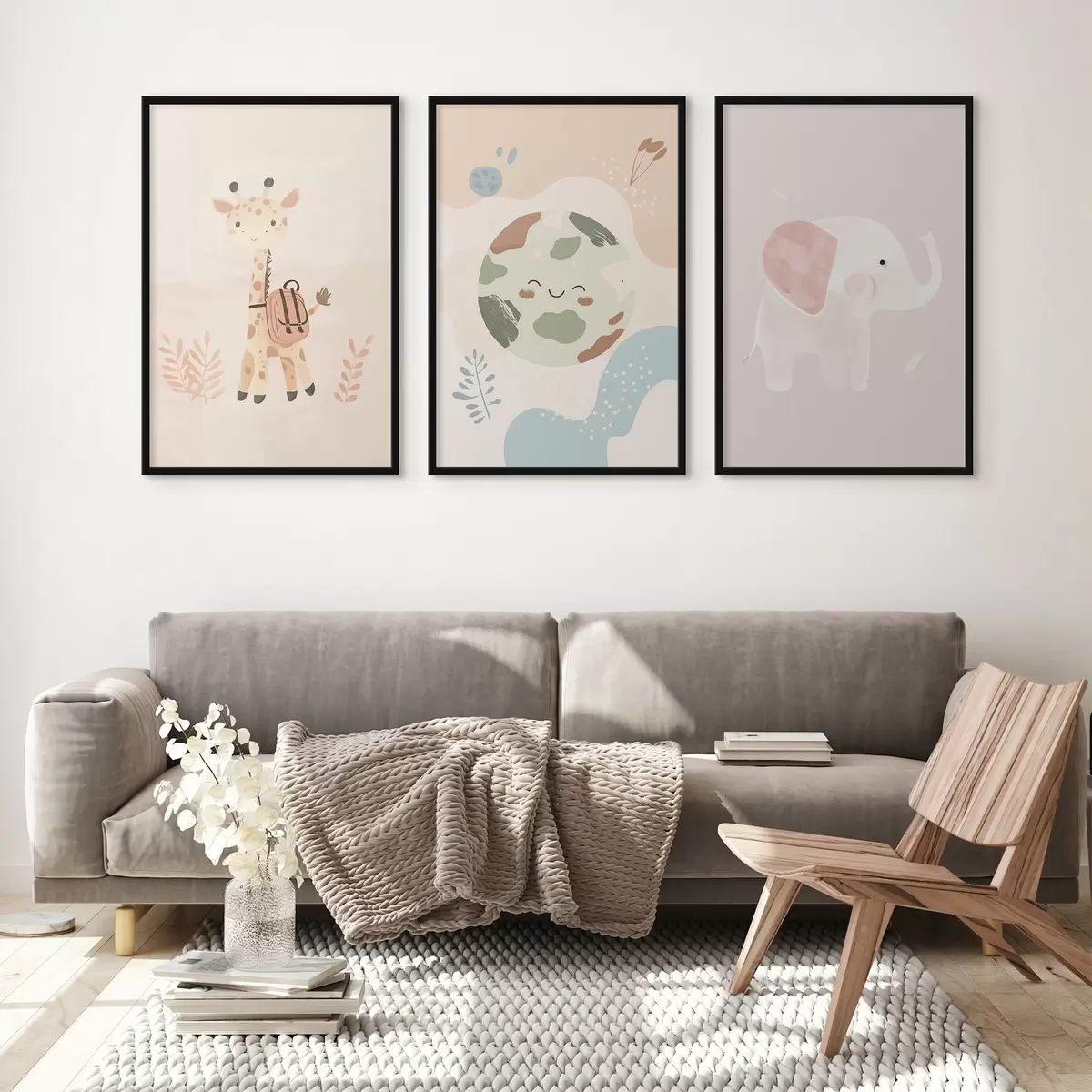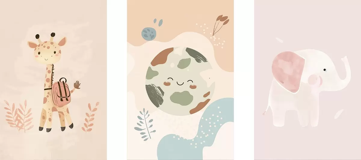 Постер на стіну Земля, жираф і слон Nr d01135