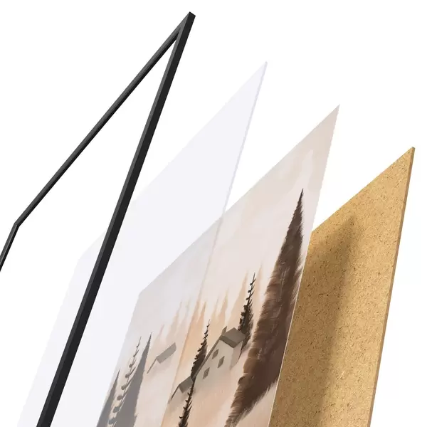 Постер складається з рами, оргскла, надрукованого зображення та підкладки з ДСП. Завдяки кріпленням на звороті плакат можна одразу ж повісити на стіну.