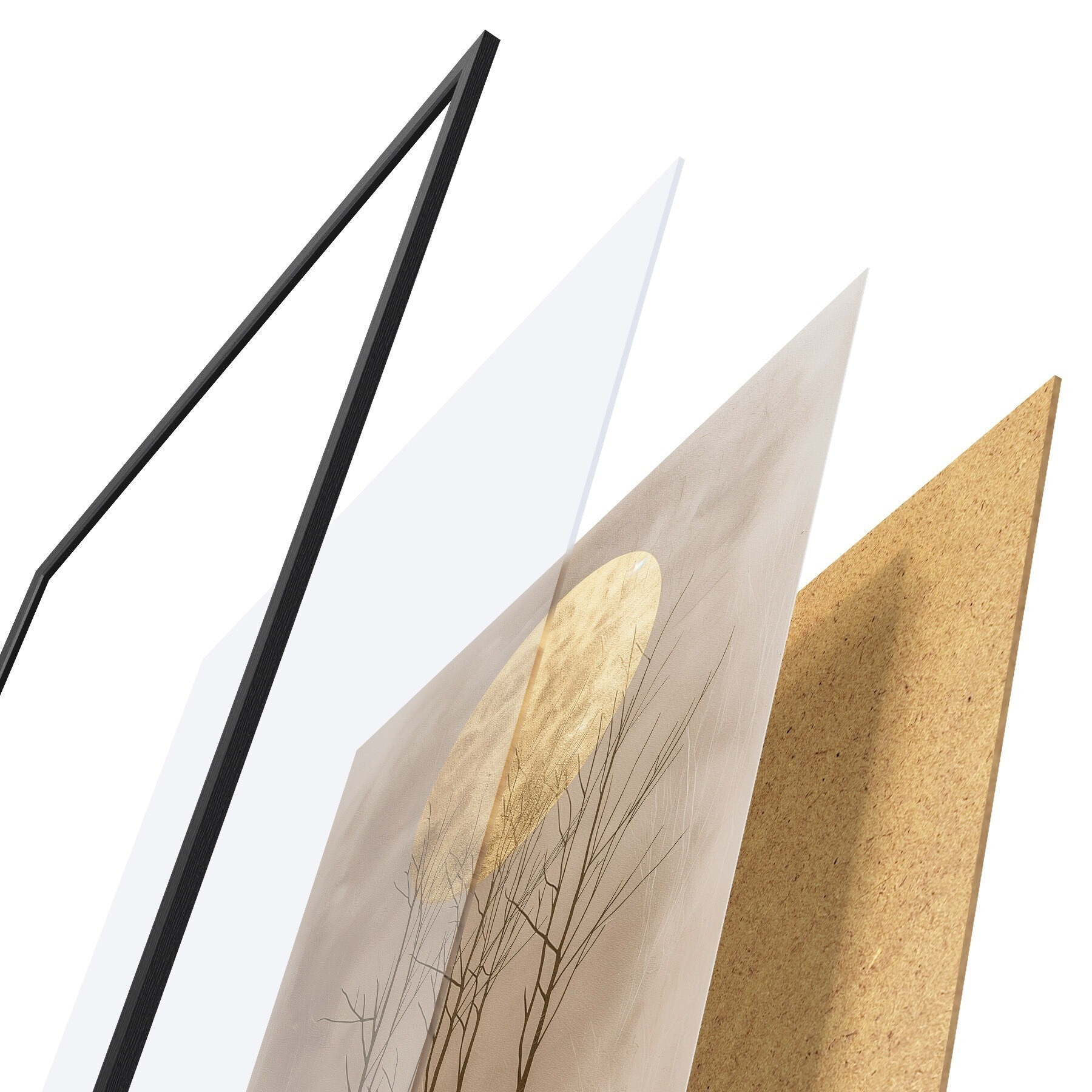 Постер складається з рами, оргскла, надрукованого зображення та підкладки з ДСП. Завдяки кріпленням на звороті плакат можна одразу ж повісити на стіну.