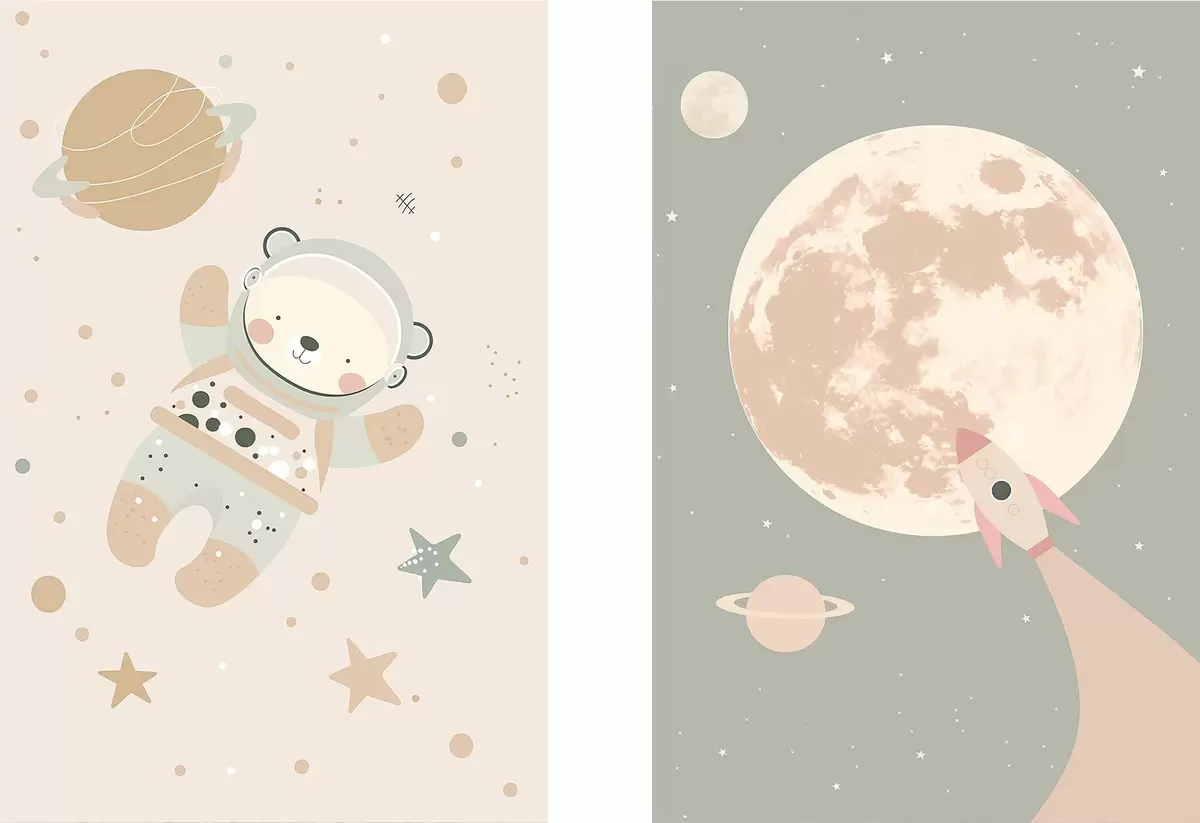 Постер на стіну Космонавт Ведмідь і Місяць Nr d01138