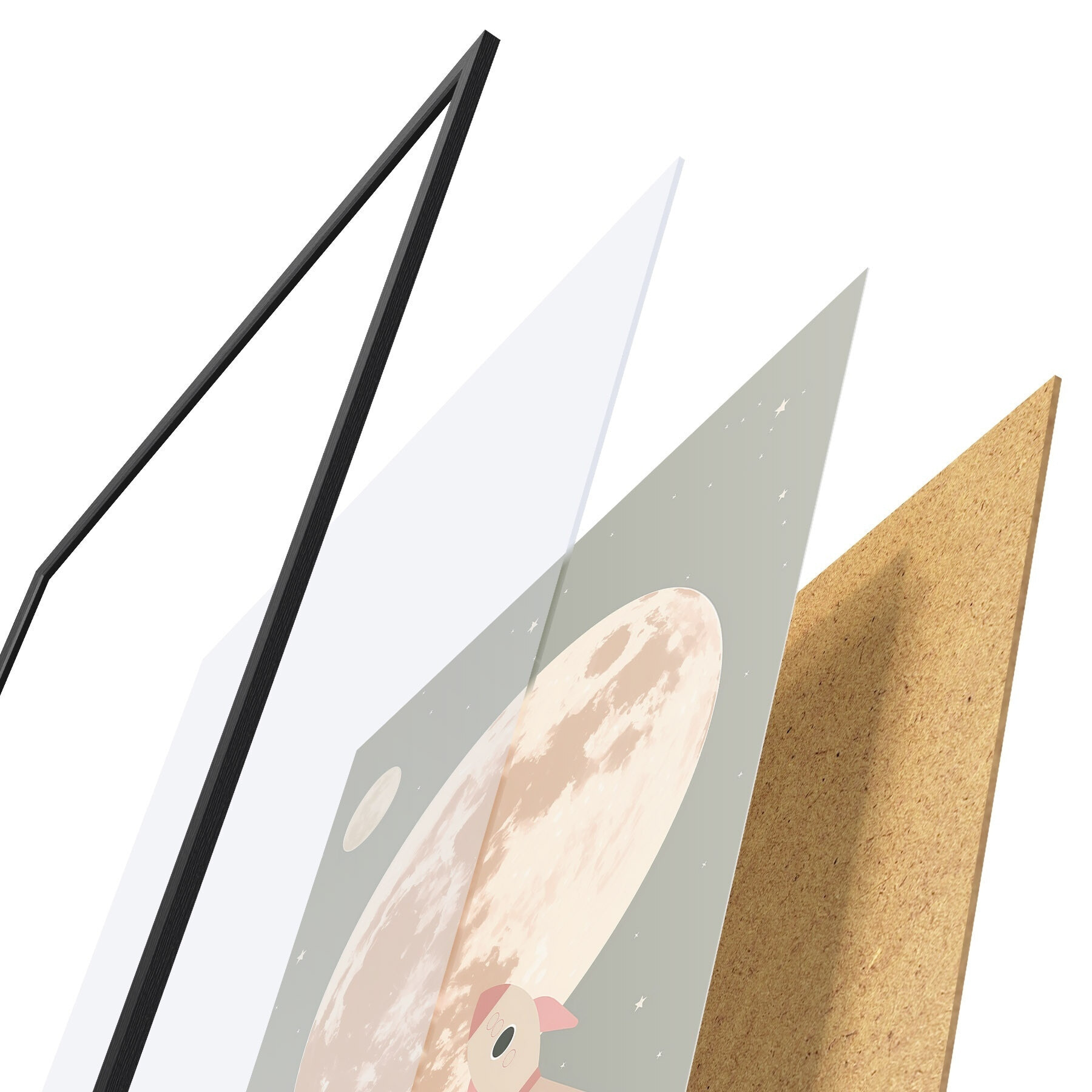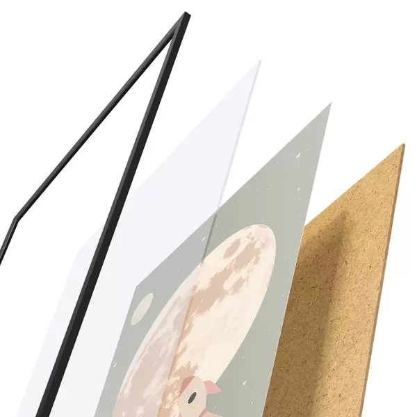 Постер складається з рами, оргскла, надрукованого зображення та підкладки з ДСП. Завдяки кріпленням на звороті плакат можна одразу ж повісити на стіну.