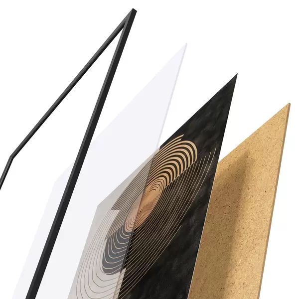 Постер складається з рами, оргскла, надрукованого зображення та підкладки з ДСП. Завдяки кріпленням на звороті плакат можна одразу ж повісити на стіну.