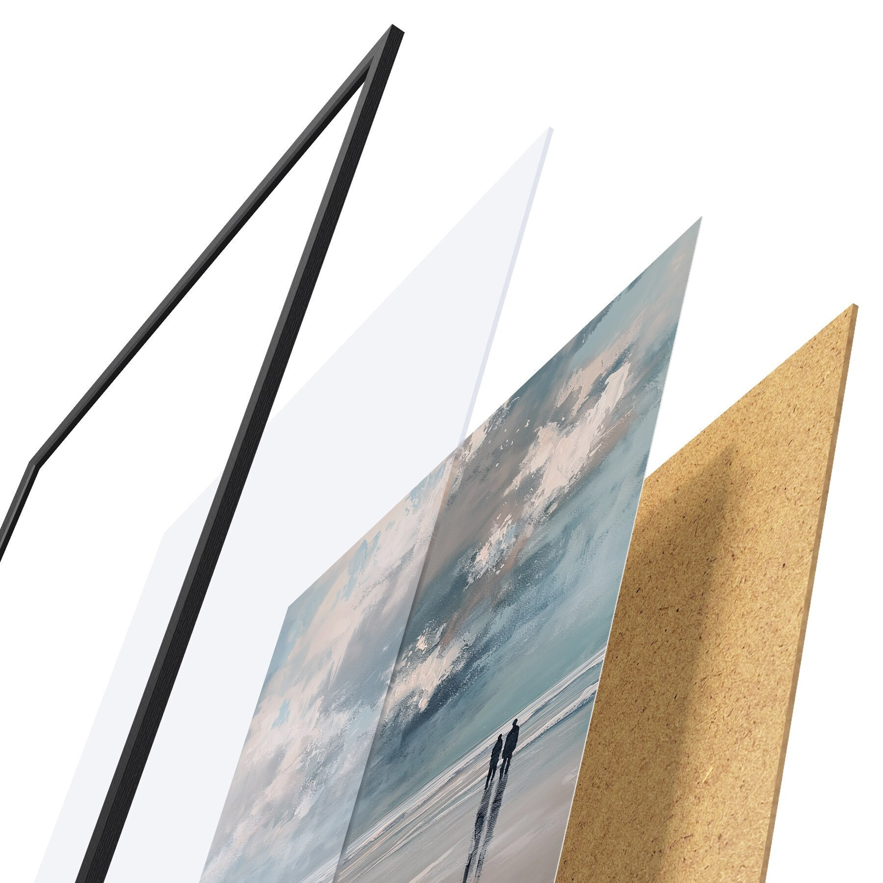 Постер складається з рами, оргскла, надрукованого зображення та підкладки з ДСП. Завдяки кріпленням на звороті плакат можна одразу ж повісити на стіну.