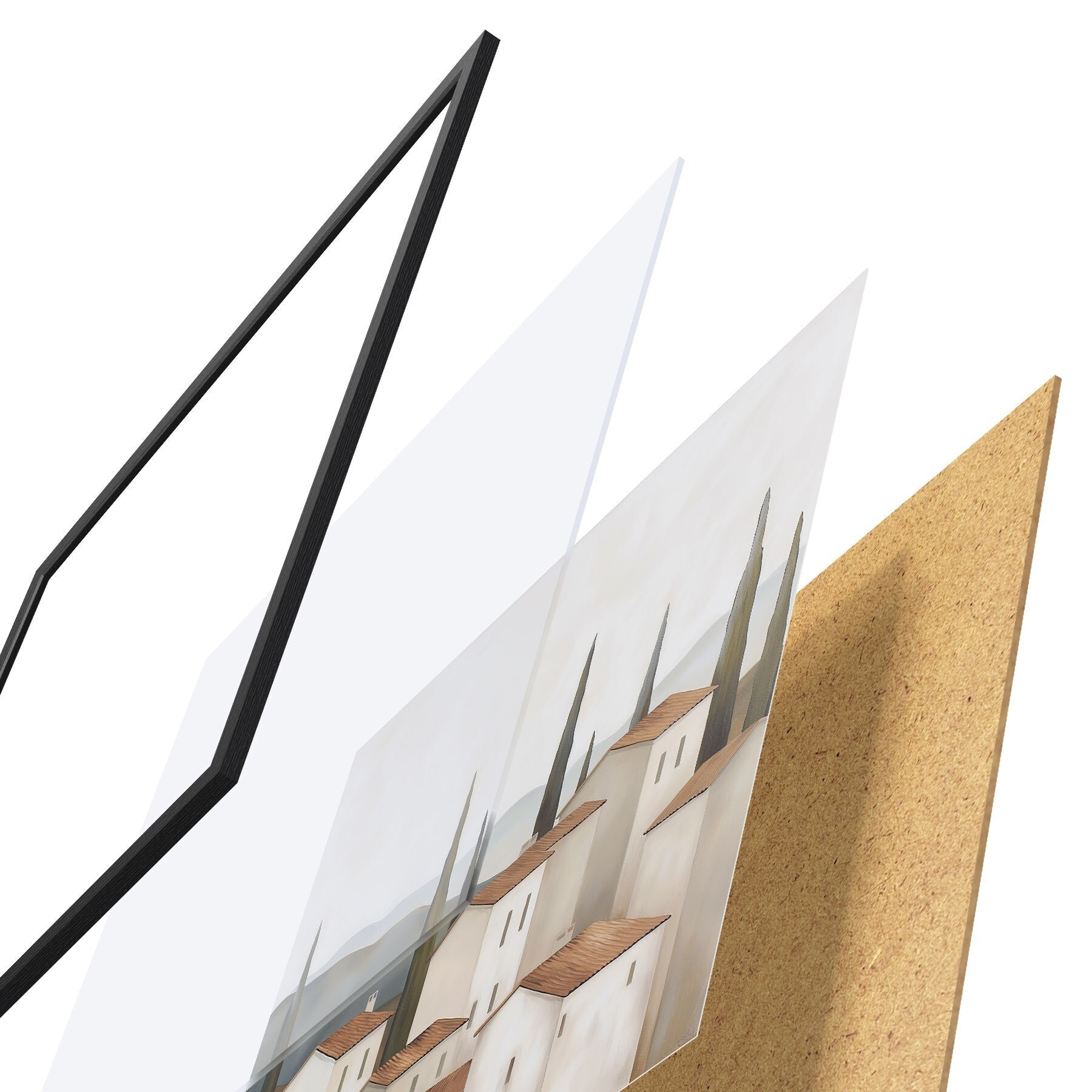 Постер складається з рами, оргскла, надрукованого зображення та підкладки з ДСП. Завдяки кріпленням на звороті плакат можна одразу ж повісити на стіну.