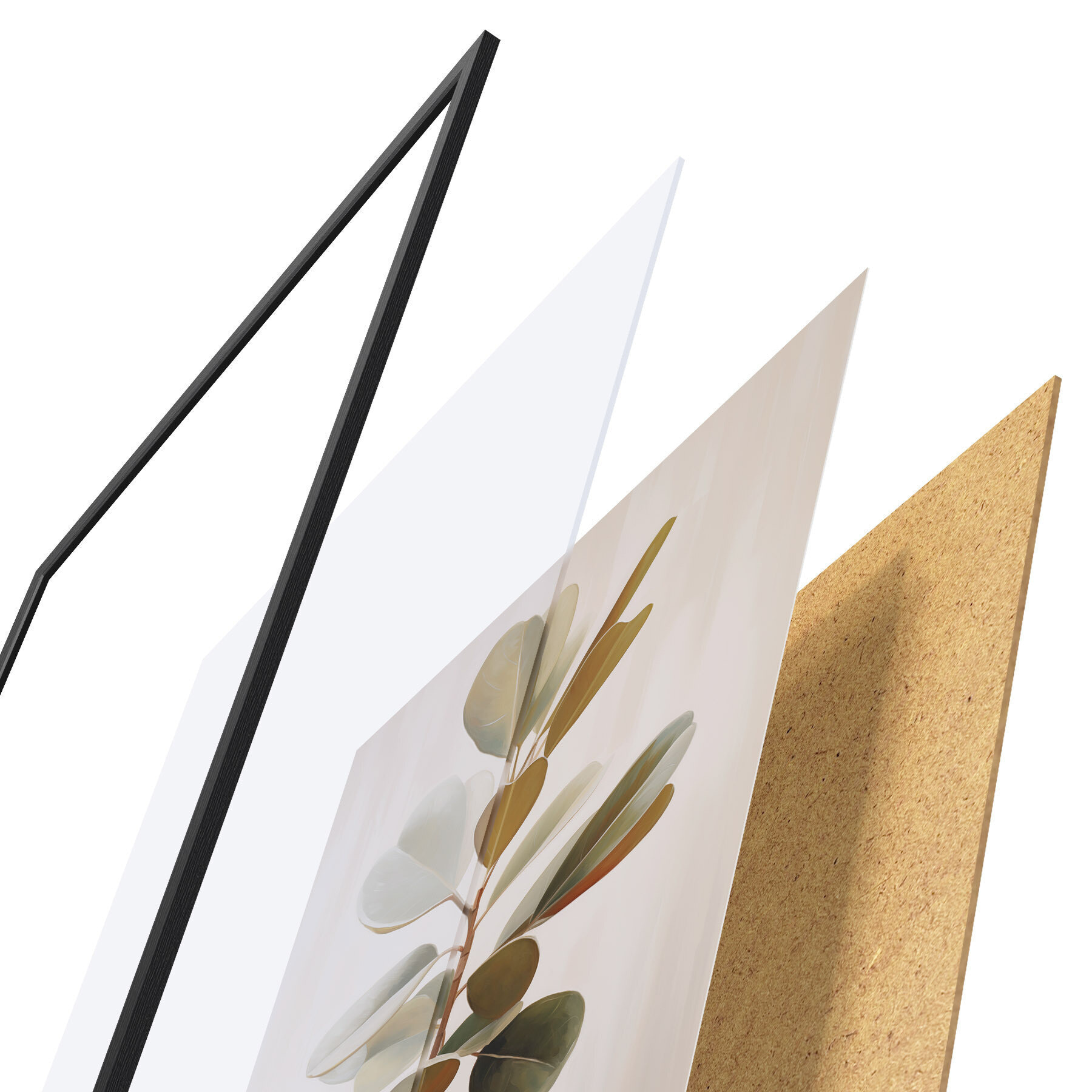 Постер складається з рами, оргскла, надрукованого зображення та підкладки з ДСП. Завдяки кріпленням на звороті плакат можна одразу ж повісити на стіну.