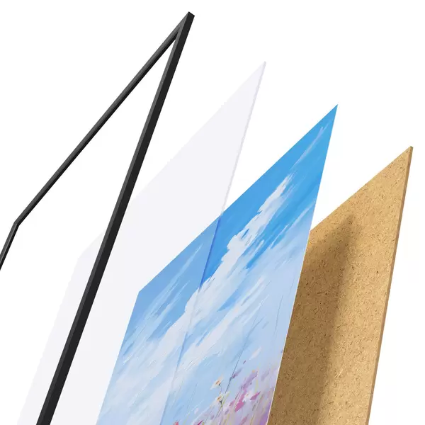 Постер складається з рами, оргскла, надрукованого зображення та підкладки з ДСП. Завдяки кріпленням на звороті плакат можна одразу ж повісити на стіну.