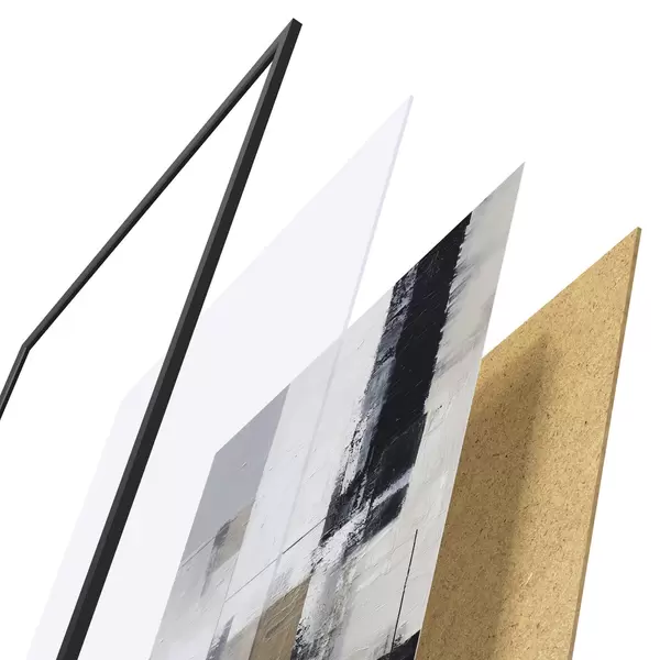 Постер складається з рами, оргскла, надрукованого зображення та підкладки з ДСП. Завдяки кріпленням на звороті плакат можна одразу ж повісити на стіну.
