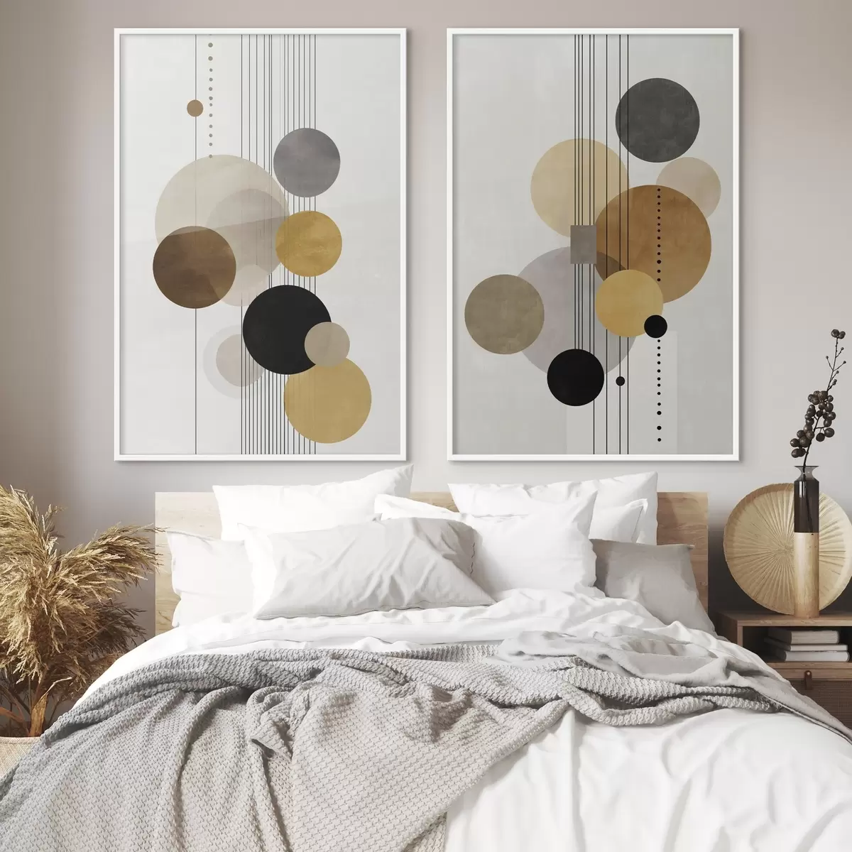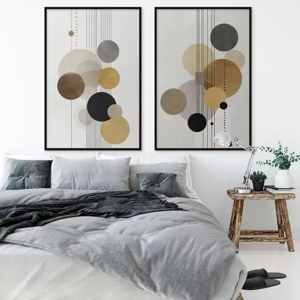 Постер на стіну абстракція з колами та лініями в теплих кольорах Nr d01182