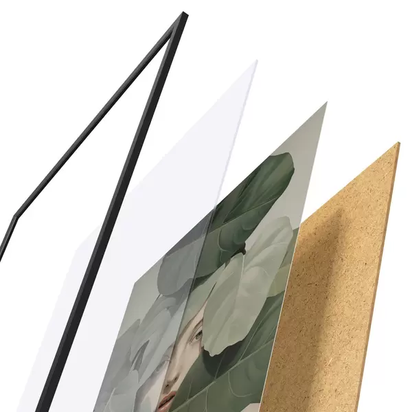 Постер складається з рами, оргскла, надрукованого зображення та підкладки з ДСП. Завдяки кріпленням на звороті плакат можна одразу ж повісити на стіну.