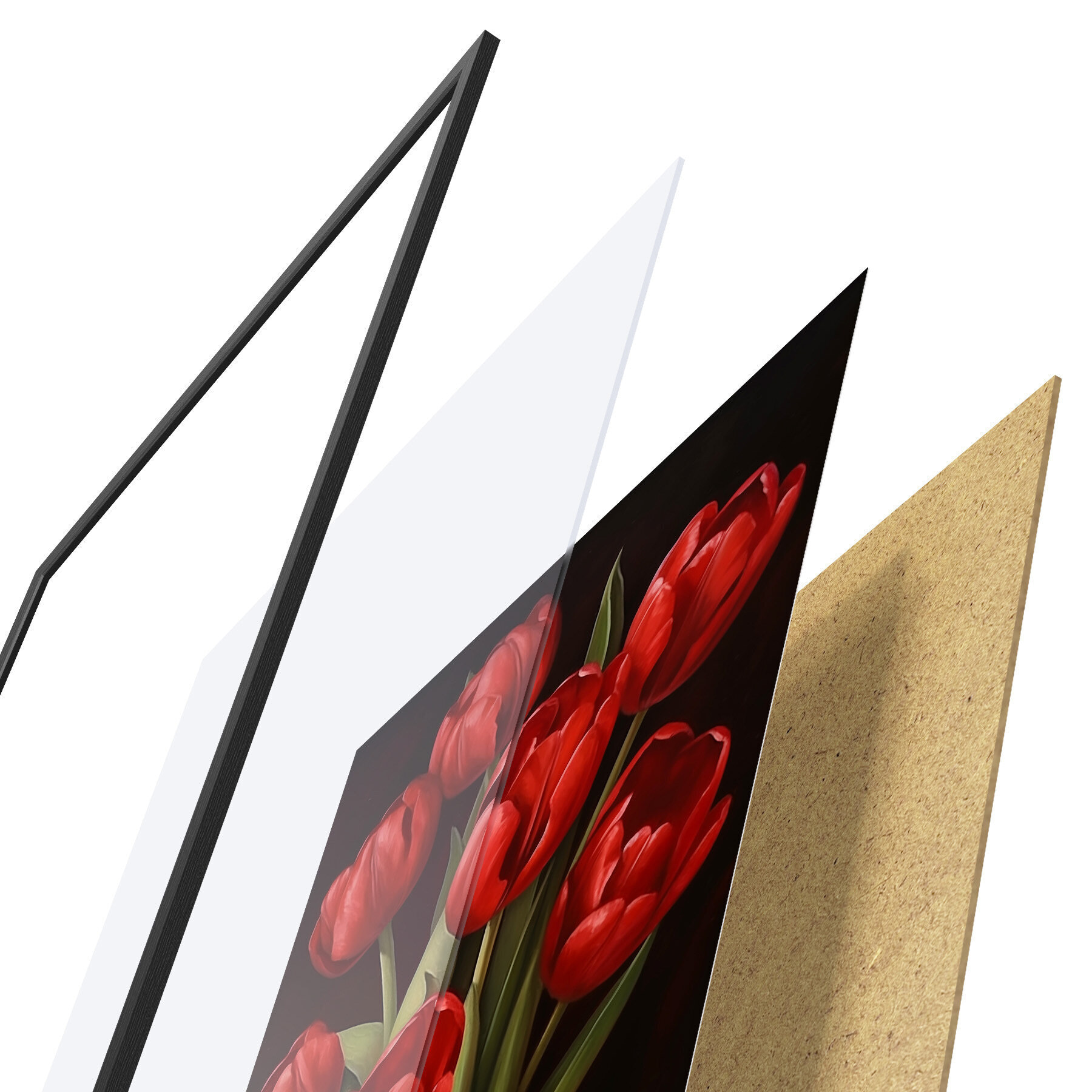 Постер складається з рами, оргскла, надрукованого зображення та підкладки з ДСП. Завдяки кріпленням на звороті плакат можна одразу ж повісити на стіну.