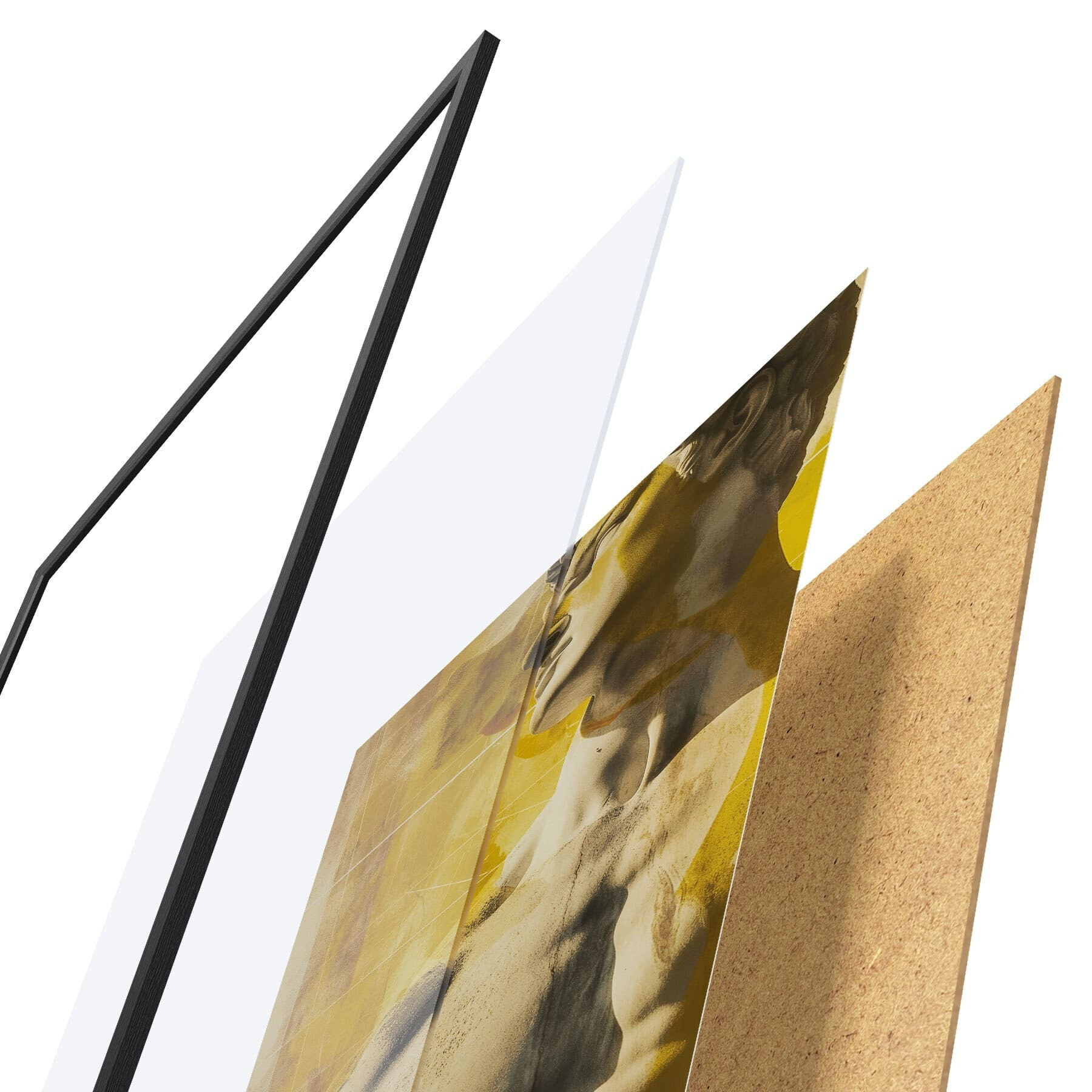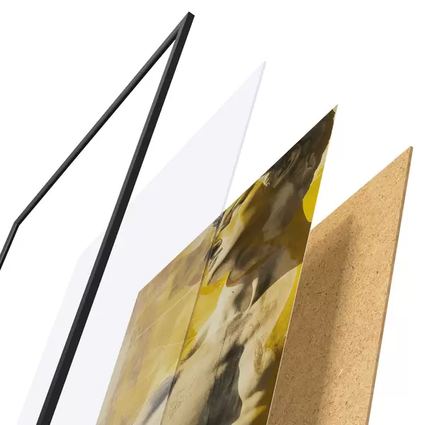 Постер складається з рами, оргскла, надрукованого зображення та підкладки з ДСП. Завдяки кріпленням на звороті плакат можна одразу ж повісити на стіну.