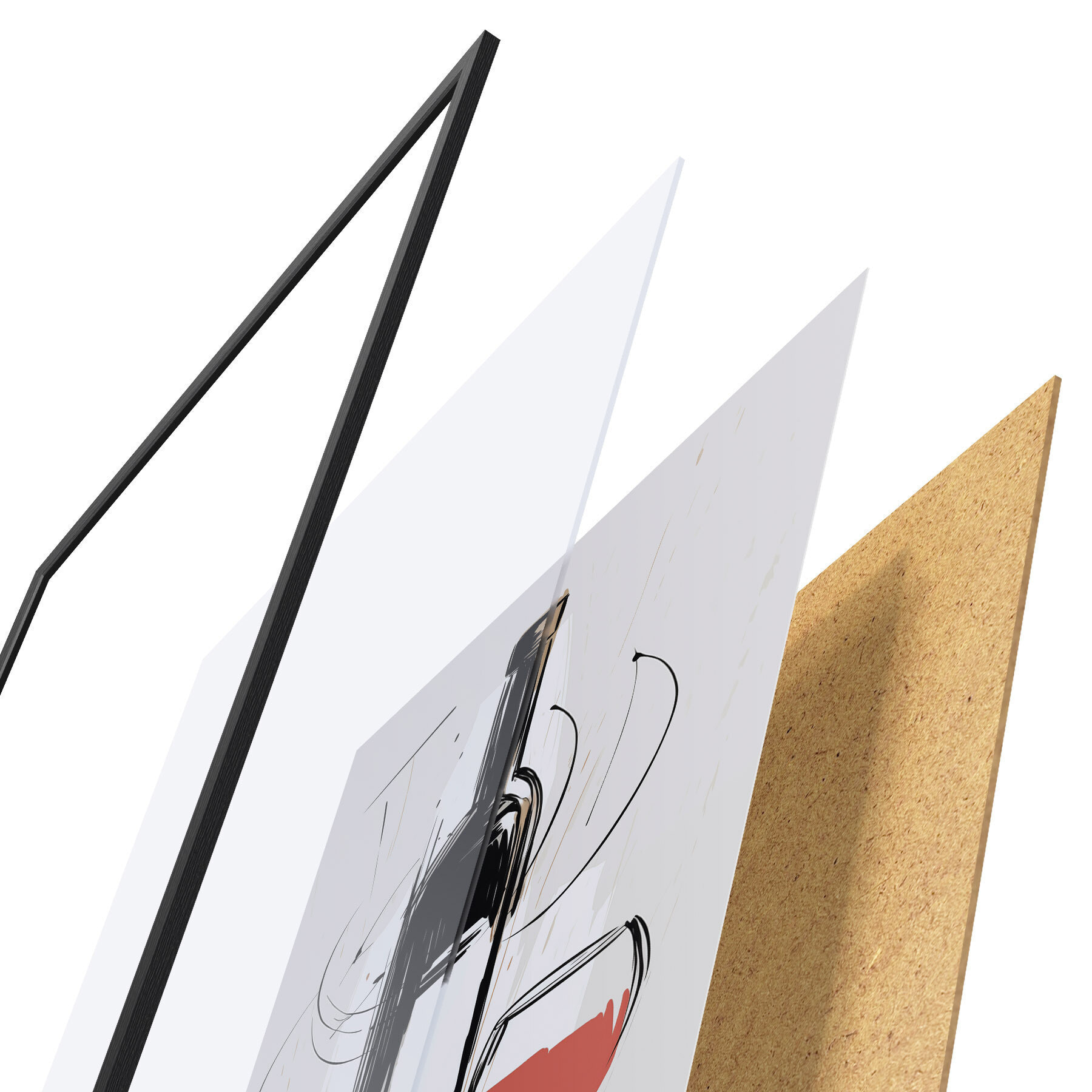 Постер складається з рами, оргскла, надрукованого зображення та підкладки з ДСП. Завдяки кріпленням на звороті плакат можна одразу ж повісити на стіну.