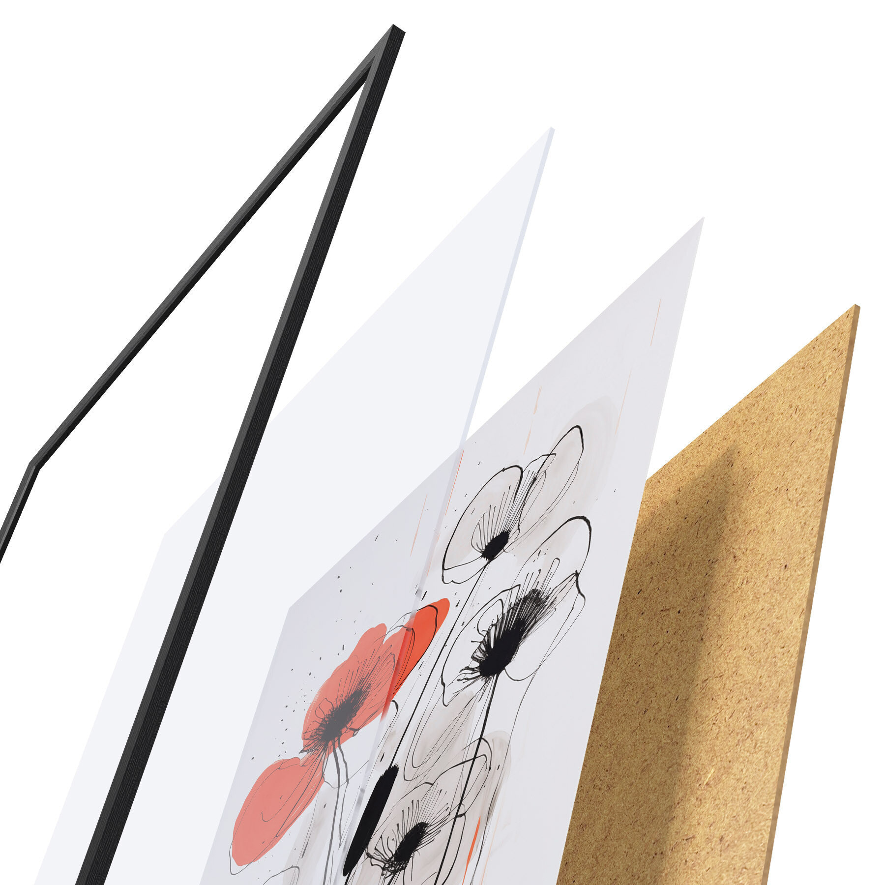 Постер складається з рами, оргскла, надрукованого зображення та підкладки з ДСП. Завдяки кріпленням на звороті плакат можна одразу ж повісити на стіну.