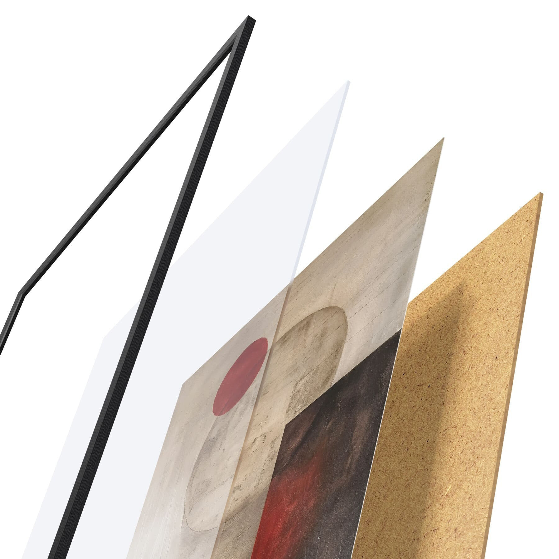 Постер складається з рами, оргскла, надрукованого зображення та підкладки з ДСП. Завдяки кріпленням на звороті плакат можна одразу ж повісити на стіну.