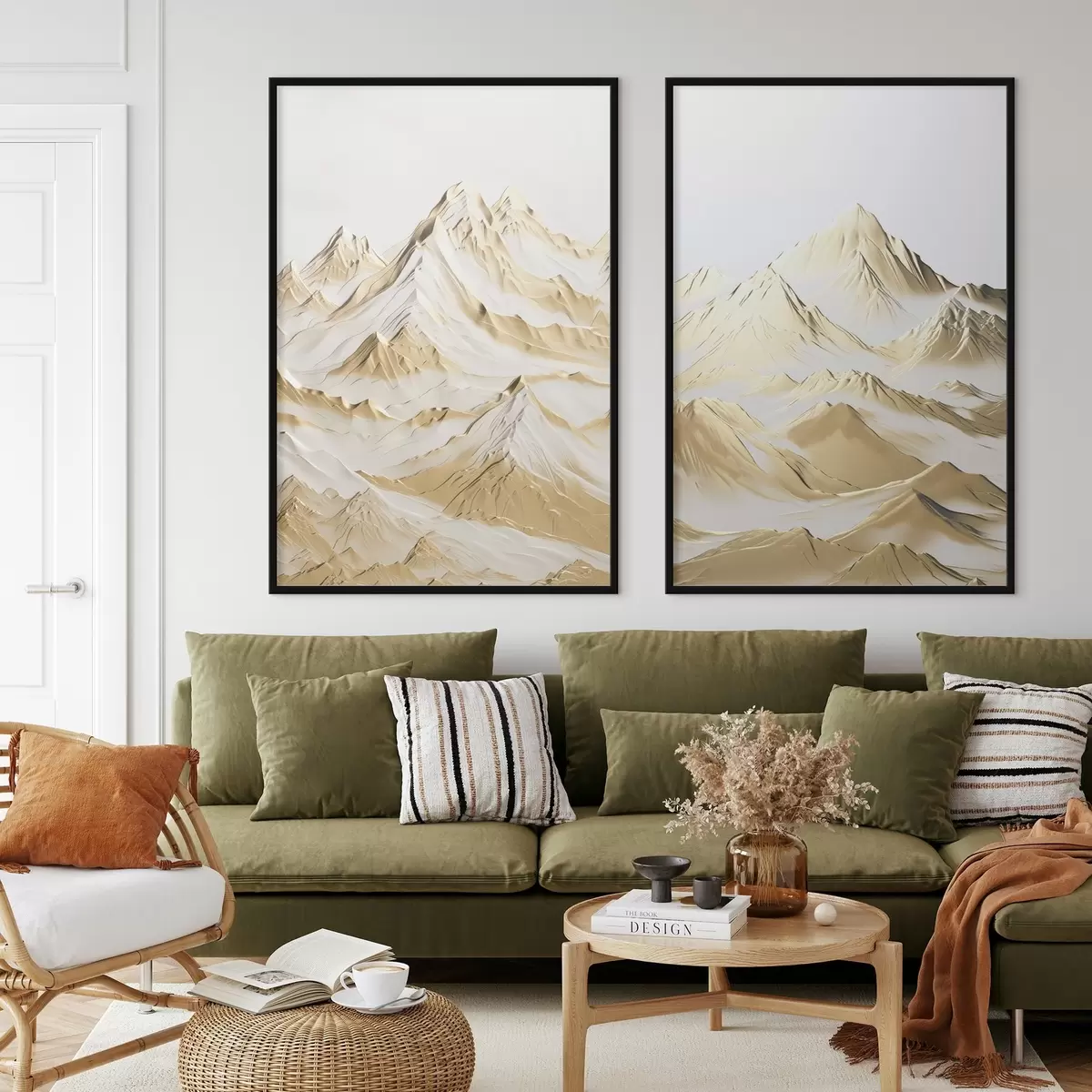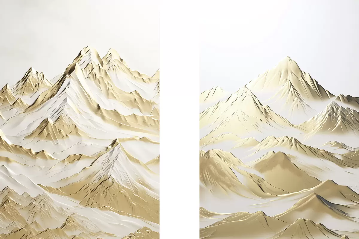 Постер на стіну Краєвид жовтих, засніжених гір з гострими вершинами і глибокими долинами під світлим небом Nr d01236