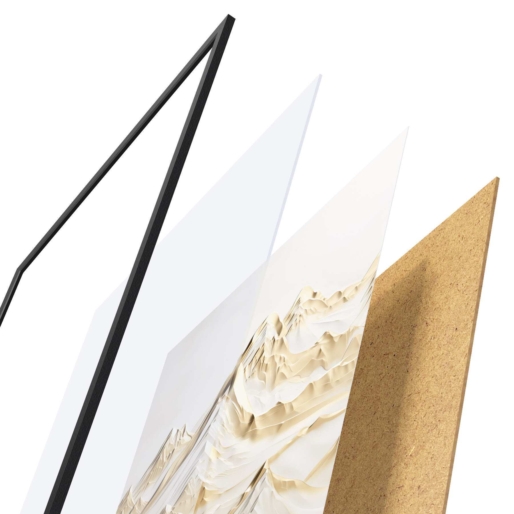 Постер складається з рами, оргскла, надрукованого зображення та підкладки з ДСП. Завдяки кріпленням на звороті плакат можна одразу ж повісити на стіну.