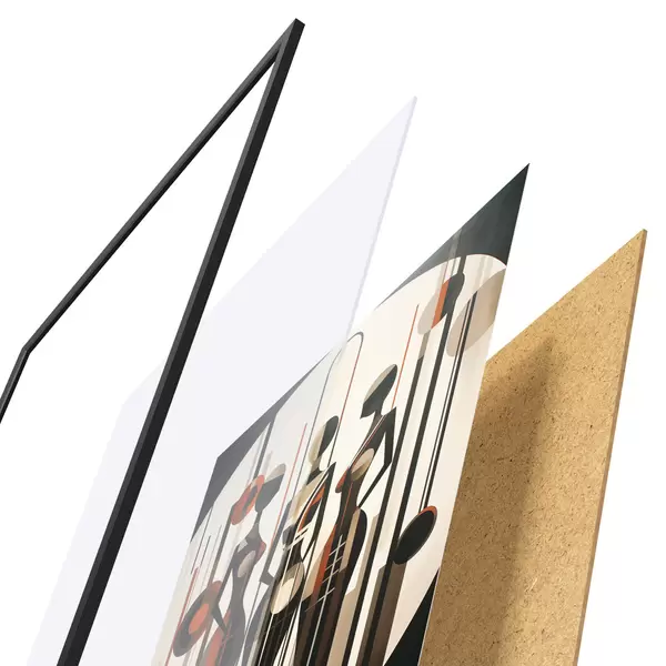 Постер складається з рами, оргскла, надрукованого зображення та підкладки з ДСП. Завдяки кріпленням на звороті плакат можна одразу ж повісити на стіну.