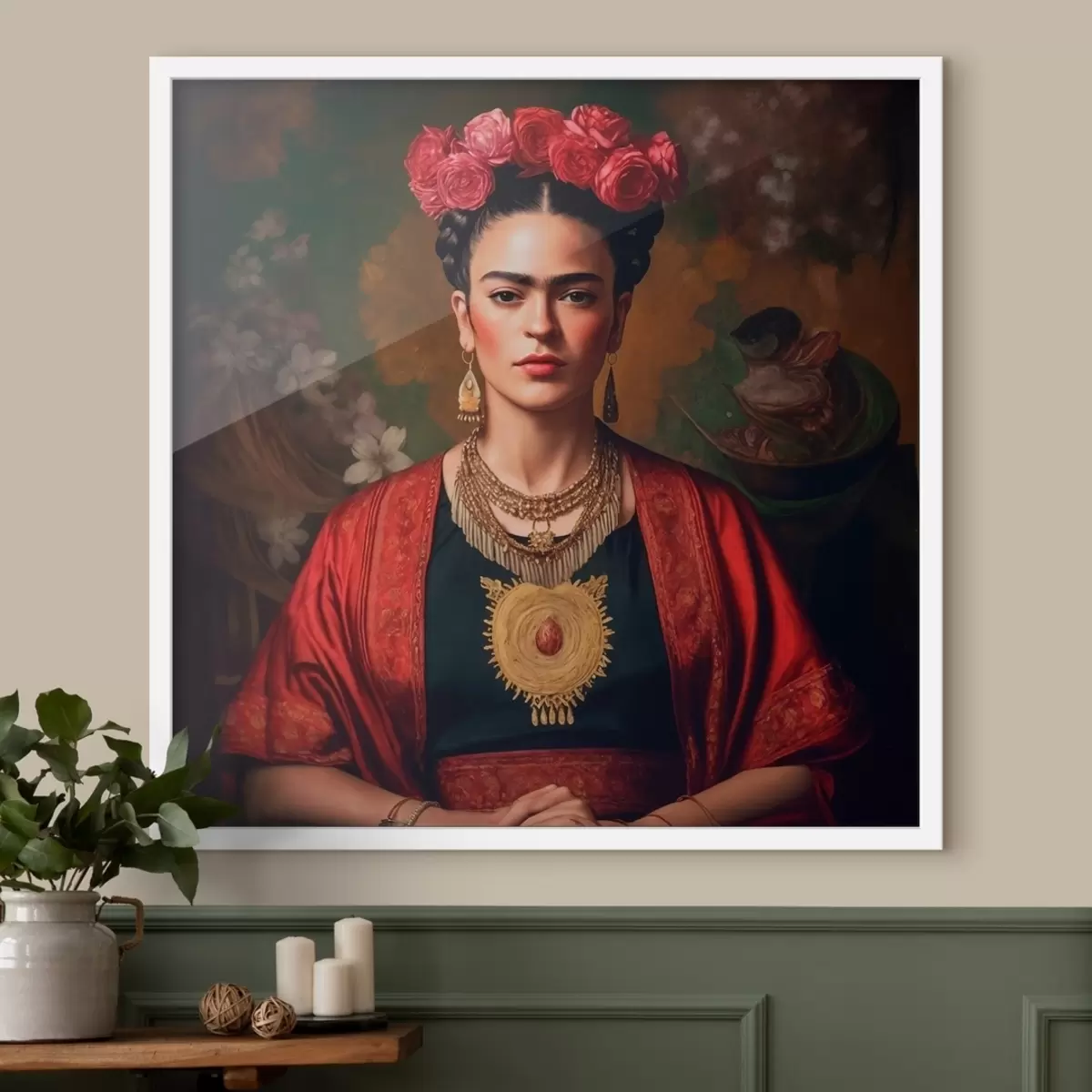Постер на стіну Фріда Кало в червоній сукні Nr f32865