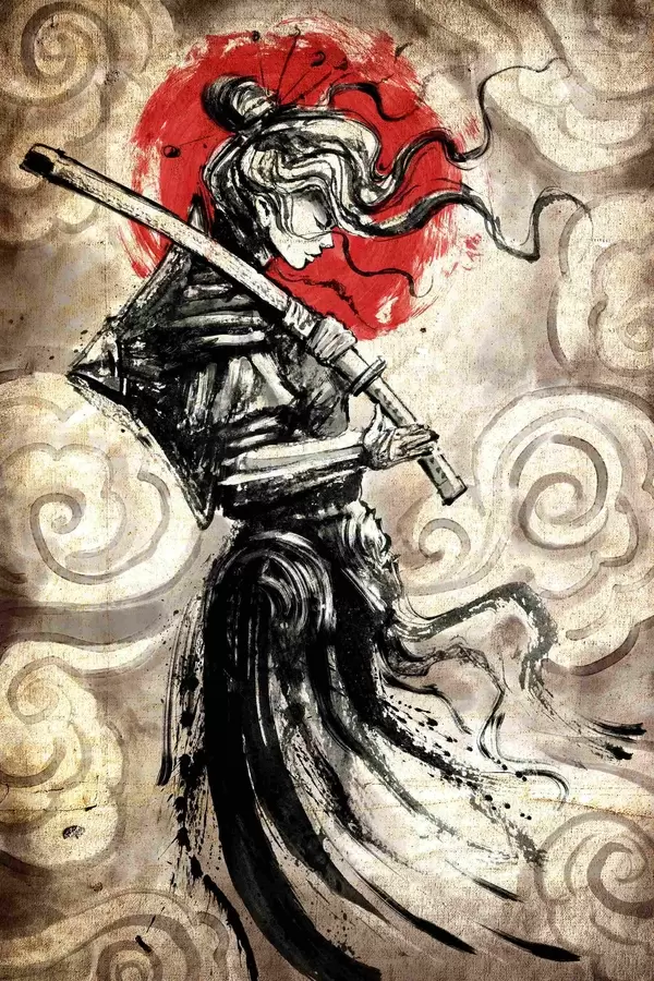Постер на стіну Красива дівчина-самурай з катаною на плечі Nr f33060