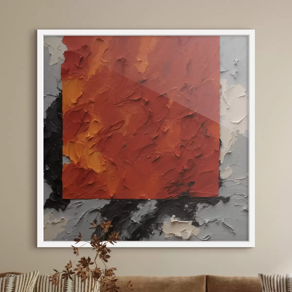 Постер на стіну Абстрактний олійний живопис з червоним квадратом Nr f37167