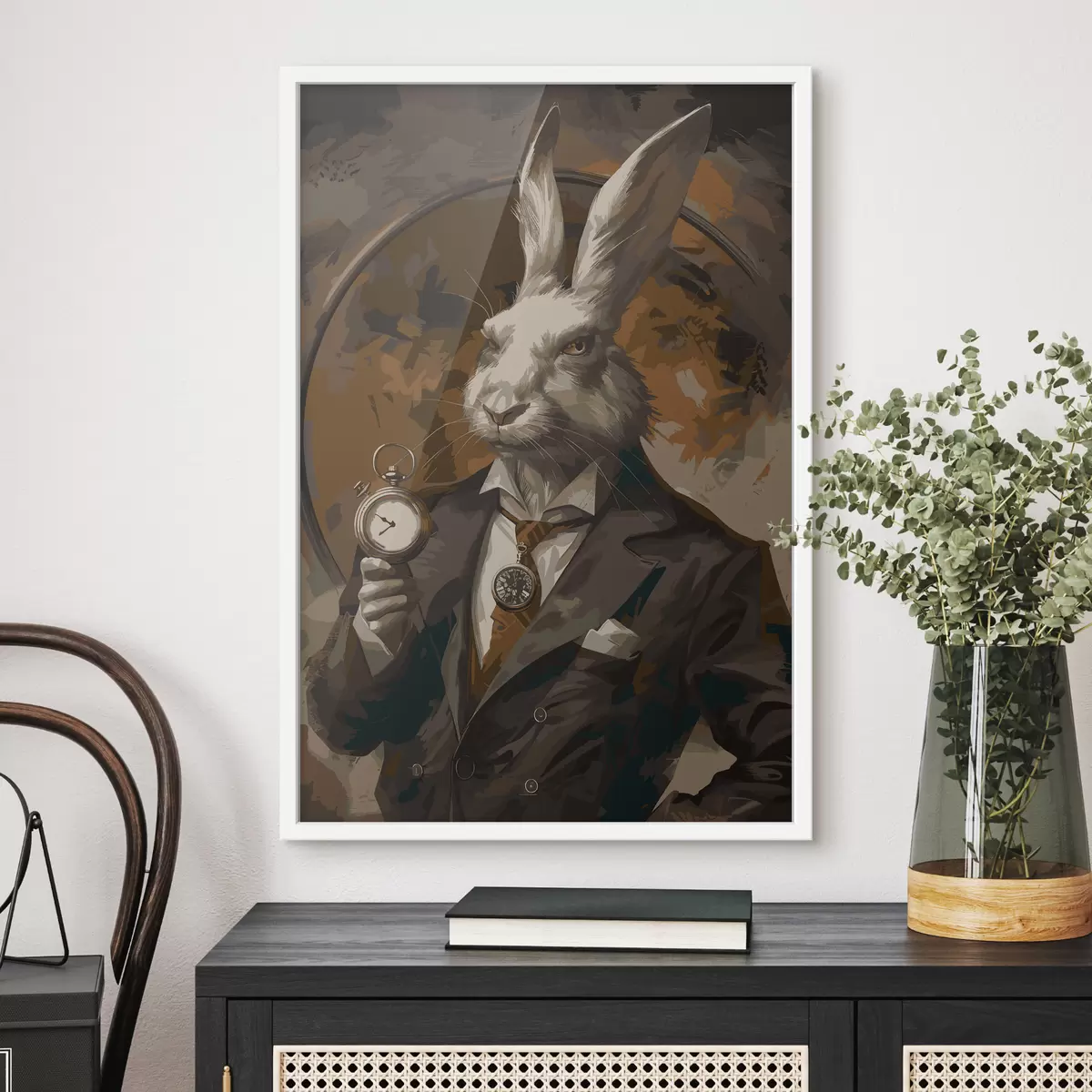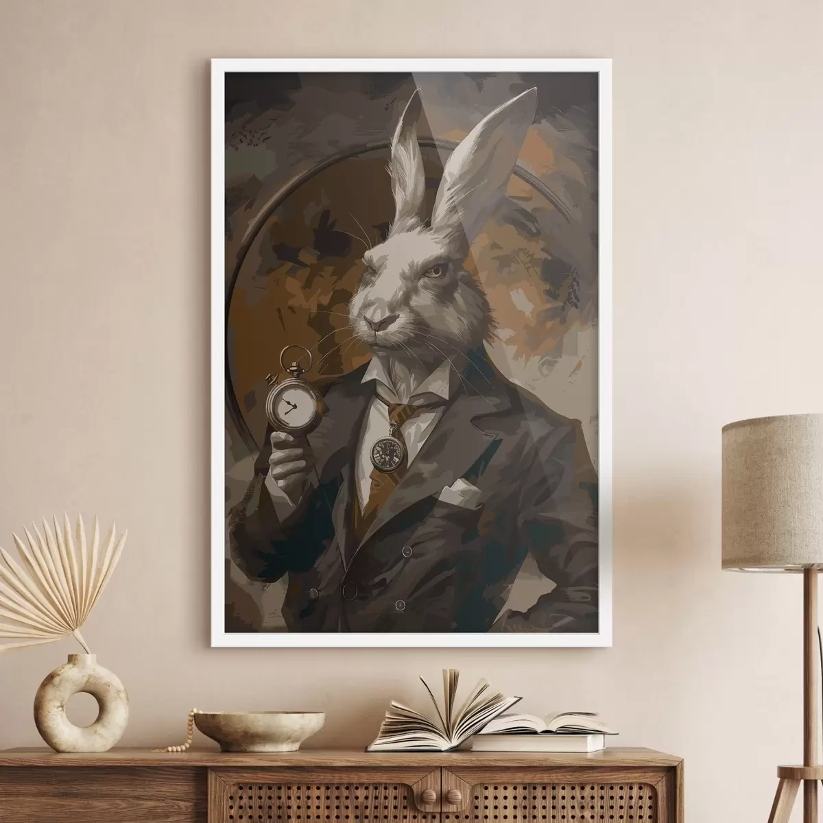 Постер на стіну Заєць з годинником у вінтажному стилі Nr f38507
